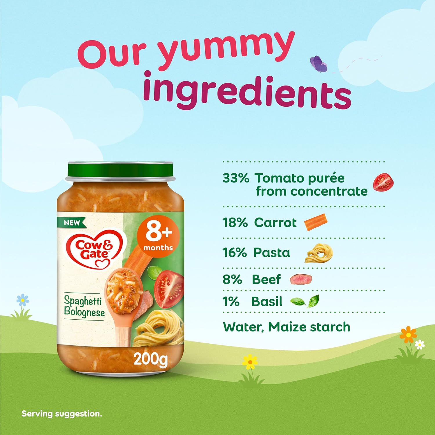 Cow & Gate Spaghetti Bolognese Baby Food Meal Jar 8+ Months 200G