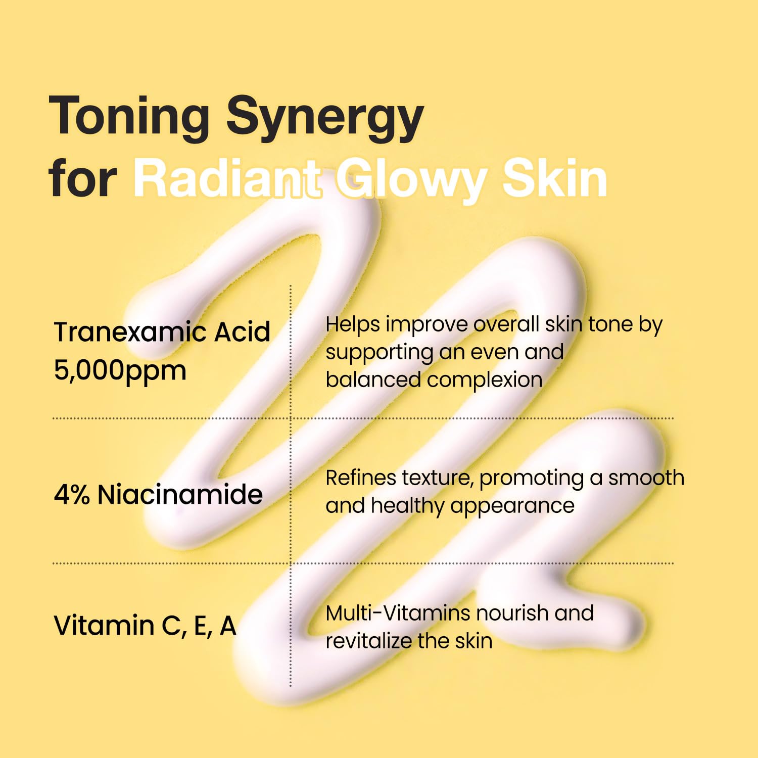 About this item Targets Uneven Skin Tone: High concentration of Tranexamic Acid and Niacinamide to target uneven skin tone, dullness, and enlarged pores. Multi-Functional; Toning + Moisturizing: Tranexamic Acid and Vitamins help even skin tone. Also Squalane and Centella Asiatica provide deep moisture for hydrated, balanced skin. Vitamin Rich for Radiant Skin: Vitamin C, E, and A to nourish the skin and promote a healthy, smooth, and luminous appearance. Soft, Creamy Balm without stickiness: glides on smoothly, leaving the skin feeling comfortable & moisturized. For All Skin Types & Daily Use: Ideal for all skin types including oily, dry, combination, normal and dull. Gentle enough for daily use, morning and night. Best Toning Duo: For optimal results, use together with the TXA Niacinamide Toning Ampoule as part of your skincare routine. See more product details,Targets Uneven Skin Tone: High concentration of Tranexamic Acid and Niacinamide to target uneven skin tone, dullness, and enlarged pores,Multi-Functional; Toning + Moisturizing: Tranexamic Acid and Vitamins help even skin tone. Also Squalane and Centella Asiatica provide deep moisture for hydrated, balanced skin,Vitamin Rich for Radiant Skin: Vitamin C, E, and A to nourish the skin and promote a healthy, smooth, and luminous appearance,Soft, Creamy Balm without stickiness: glides on smoothly, leaving the skin feeling comfortable & moisturized,For All Skin Types & Daily Use: Ideal for all skin types including oily, dry, combination, normal and dull. Gentle enough for daily use, morning and night,Best Toning Duo: For optimal results, use together with the TXA Niacinamide Toning Ampoule as part of your skincare routine