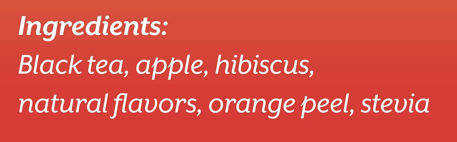 Ingredients: Black Tea, Apple, Roselle, Natural Flavors, Orange Peel, Stevia