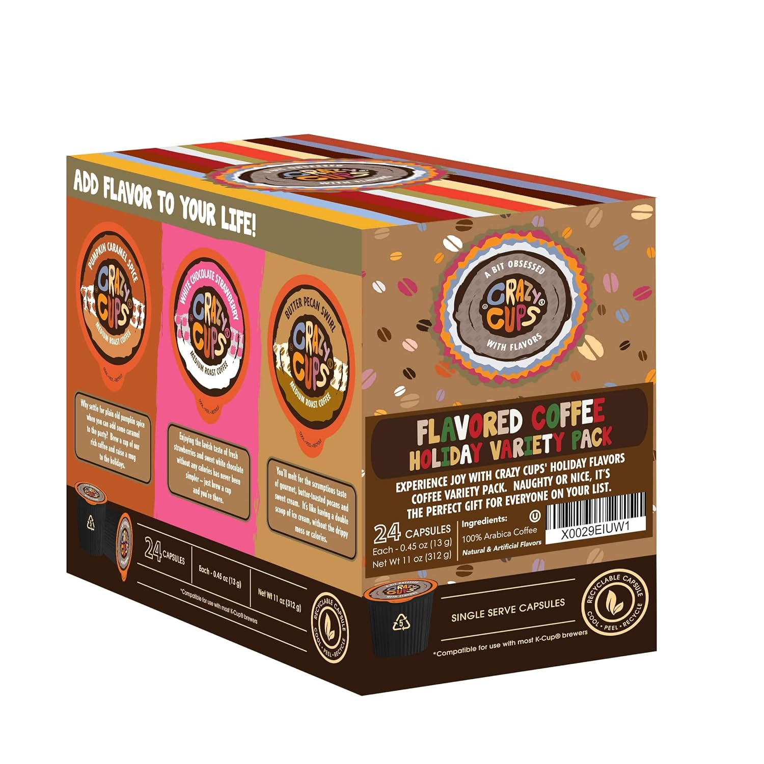 Crazy Cups Flavored Medium Roast Hot Or Iced Coffee, Variety Recyclable Pods For Keurig K Cup Brewers, 24 Count