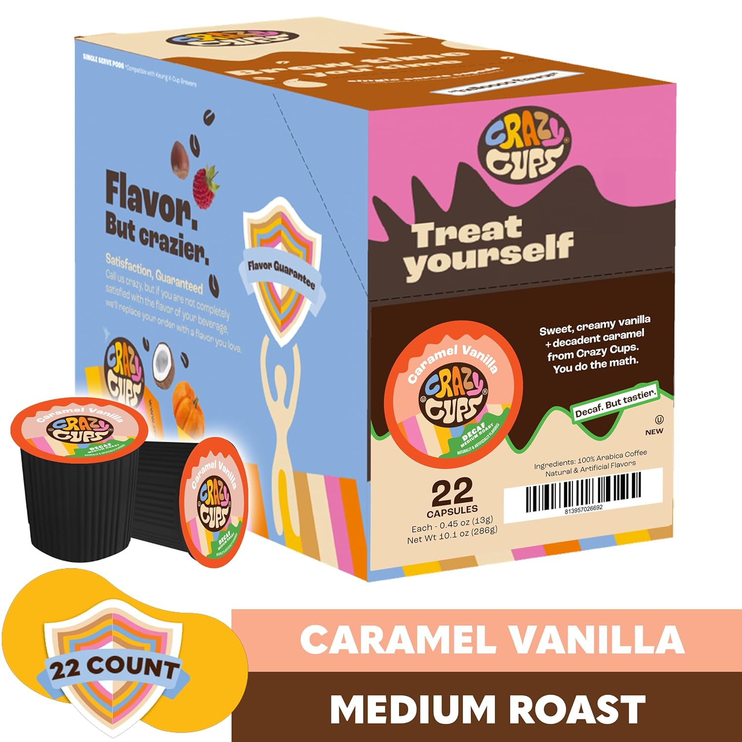 Crazy Cups Flavored Single-Serve Coffee For Keurig K-Cups Machines, Decaf Caramel Vanilla, 22 Count
