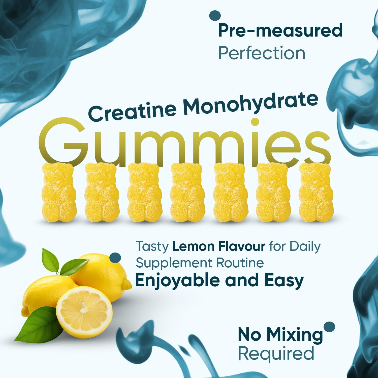Creatine Gummies For Men & Women - 90 Chewable Creatine Monohydrate Gummies (1 Month Supply) - Natural Lemon Flavoured - Pre Workout Gym Supplement