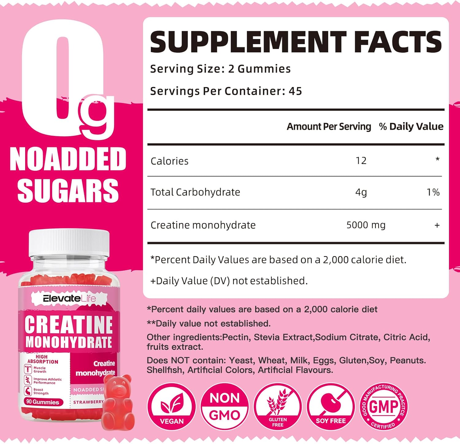 Creatine Monohydrate Gummies 5000Mg For Men & Women Strawberry 180