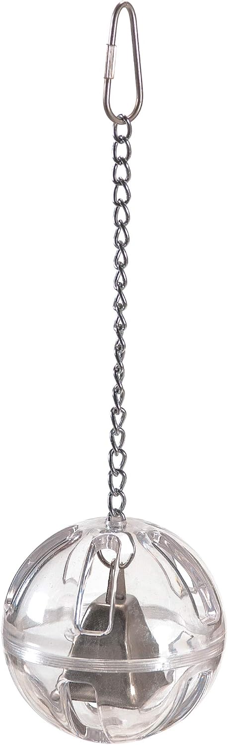 Our Foraging Ball with Bell stimulates your bird mentally and physically by encouraging foraging behavior! Foraging Ball with Bell tolls merrily as your pet bird tries to fish out treats you place inside. To entice your bird, just fill the durable polycarbonate ball with small treats, food pellets or chewable toy pieces to get the fun started. This hanging foraging toy doubles as a noise maker to engage your pet bird for hours. The ball twists open for easy filling. This toy is also dishwasher safe for easy sterilization