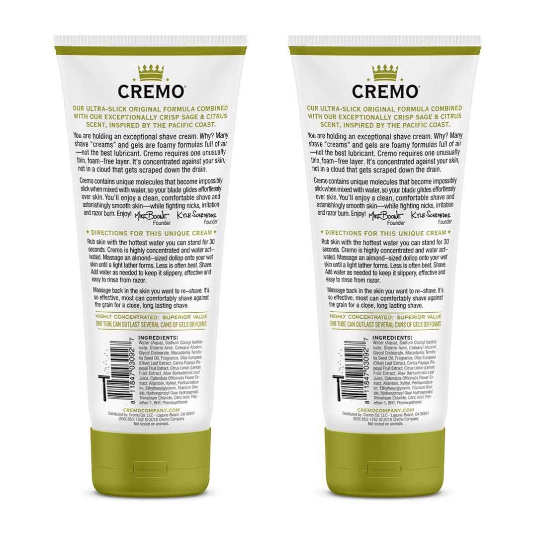 Cremo Barber Grade Sage & Citrus Shave Cream, Astonishingly Superior Ultra-Slick Shaving Cream Fights Nicks, Cuts And Razor Burn, 6 Fl Oz (2 Pack)