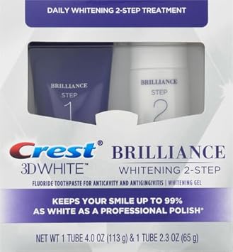 Upgrade Your Oral Care Routine. Feel The Difference Of A 2-Step System That You Can Use Everyday. 2 Minutes Twice Daily For A Whiter Smile. Experience Brilliant Whitening Results With Crest 3D White Brilliance Daily Cleansing Toothpaste And Whitening Gel System. The Two-Step System Comes With A Deep Cleansing Toothpaste And A Whitening Finisher. Step 1 Cleans Thoroughly And Step 2 Polishes And Whitens To Keep Your Smile Up To 99% As White As A Professional Polish*. You Can Feel The Difference After Just One Use. *With Daily Use. Stain Assessed 4 Weeks After A Dental Cleaning