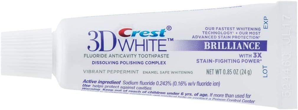 Crest 3D White Brilliance Toothpaste, Vibrant Peppermint, Travel Size, 0.85 Oz (24G) - Pack Of 12