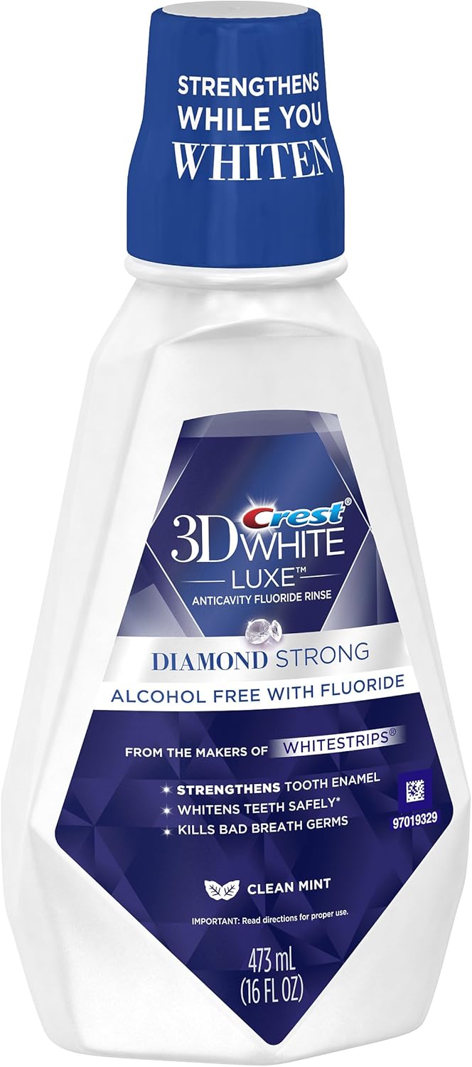 Crest 3D White Luxe Diamond Strong Anticavity Fluoride Mouth Rinse, Clean Mint, 16 Fl Oz