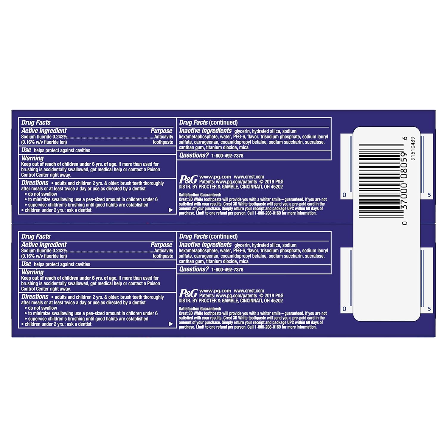 Crest 3D White, Whitening Toothpaste Glamorous White, 4.1 , Pack of 2