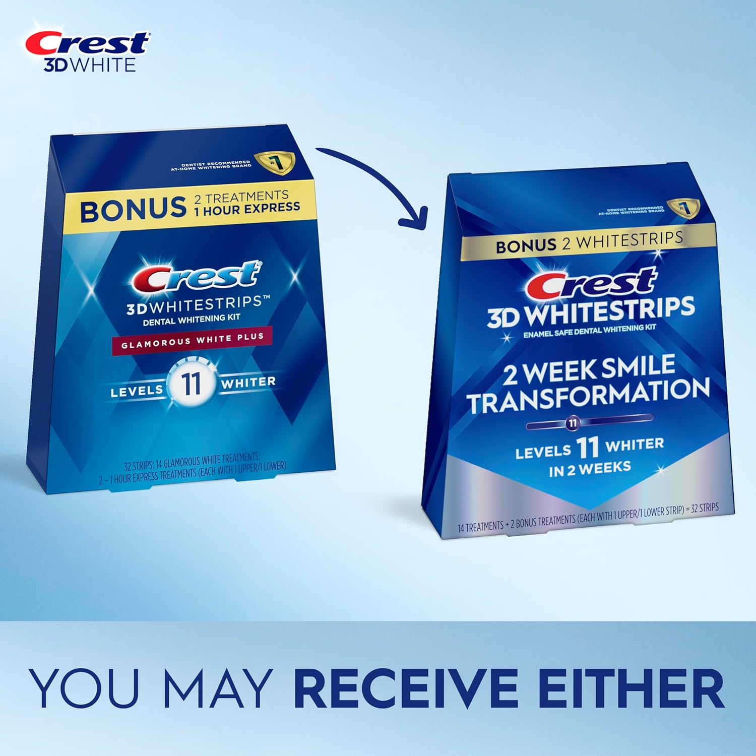 Crest 3D Whitestrips Glamorous White, 3D White, Teeth Whitening Strip Kit, 32 Strips (16 Count Pack) - Crest Teeth Whitening Strips, Teeth Whitening Kit - Packaging May Vary