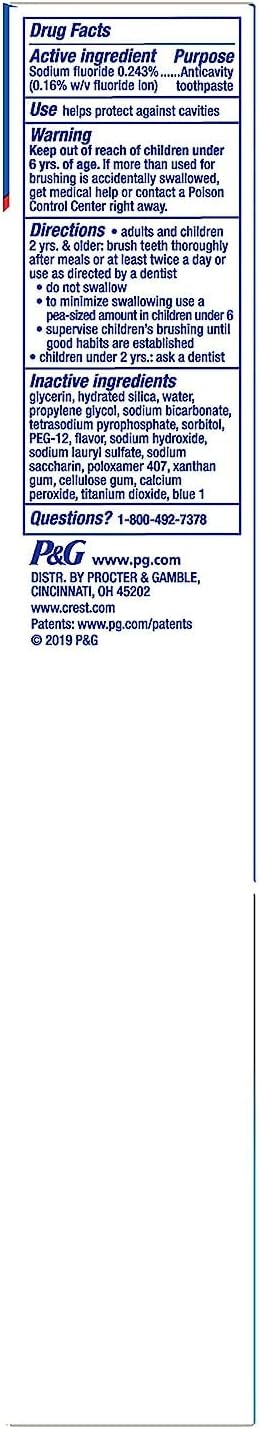 About this item Crest Cavity and Tartar Protection Toothpaste Whitening Baking Soda and Peroxide 3 Count of 5.7 oz Tubes Each 17.1 oz Brand : Crest Product type: TOOTH CLEANING AGENT 161 g Pack of 3 tooth › See more product details,Crest Cavity and Tartar Protection Toothpaste Whitening Baking Soda and Peroxide 3 Count of 5.7 oz Tubes Each 17.1 oz,Brand : Crest,Product type: TOOTH CLEANING AGENT,161 g Pack of 3,tooth