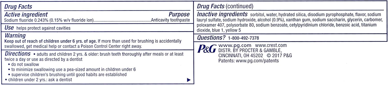 Whitening Formula: Crest Complete Toothpaste contains a whitening formula that helps remove surface stains for visibly whiter teeth