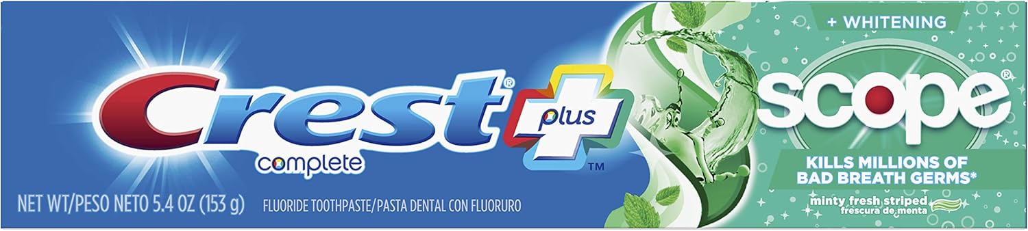 Crest Complete Multi-Benefit Whitening + Scope Fluoride Toothpaste Minty Fresh Striped - 5.4 oz (153 g) : .: Health & Personal Care