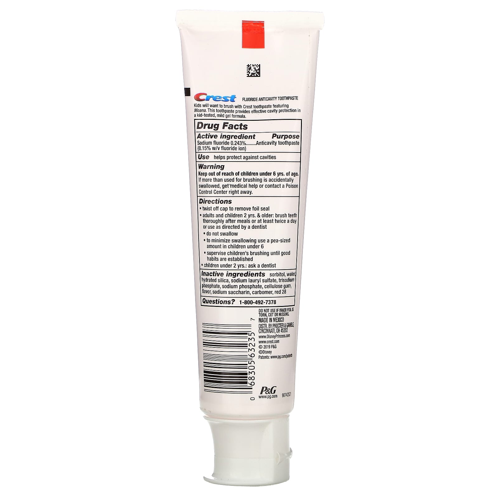 Crest, Fluoride Anticavity Toothpaste, Disney Princess Moana, Bubble Gum (119 g)