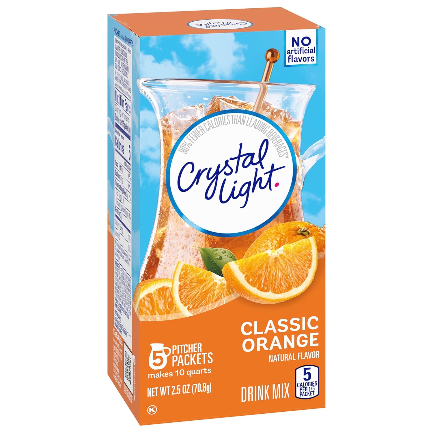 Crystal Light Naturally Flavored Classic Orange Powdered Drink Mix Is A Refreshing Beverage You Can Enjoy At Any Time Of Day. With Zero Grams Of Sugar And Only 5 Calories Per Serving, Crystal Light Is A Sweet Alternative To Juice And Soda And Has 90 Percent Fewer Calories Than Leading Beverages (This Product Is 5 Calories, Leading Beverages Are 70 Calories), So You Don'T Have To Choose Between Taste And Calories. Made With Natural Flavors, Our Orange Drink Has A Refreshing, Energizing Taste. Each Tray Includes 12 Canisters With 5 Individual Pre-Portioned Pitcher Packs Per Canister (60 Packs Total) Of Powdered Orange Drink Mix For Easy Mixing Without Measuring. Simply Mix One Orange Drink Packet With 8 Cups Or 2 Quarts Of Water, Stir, And Enjoy! All The Flavor And Only 5 Calories, Just The Way You Like It