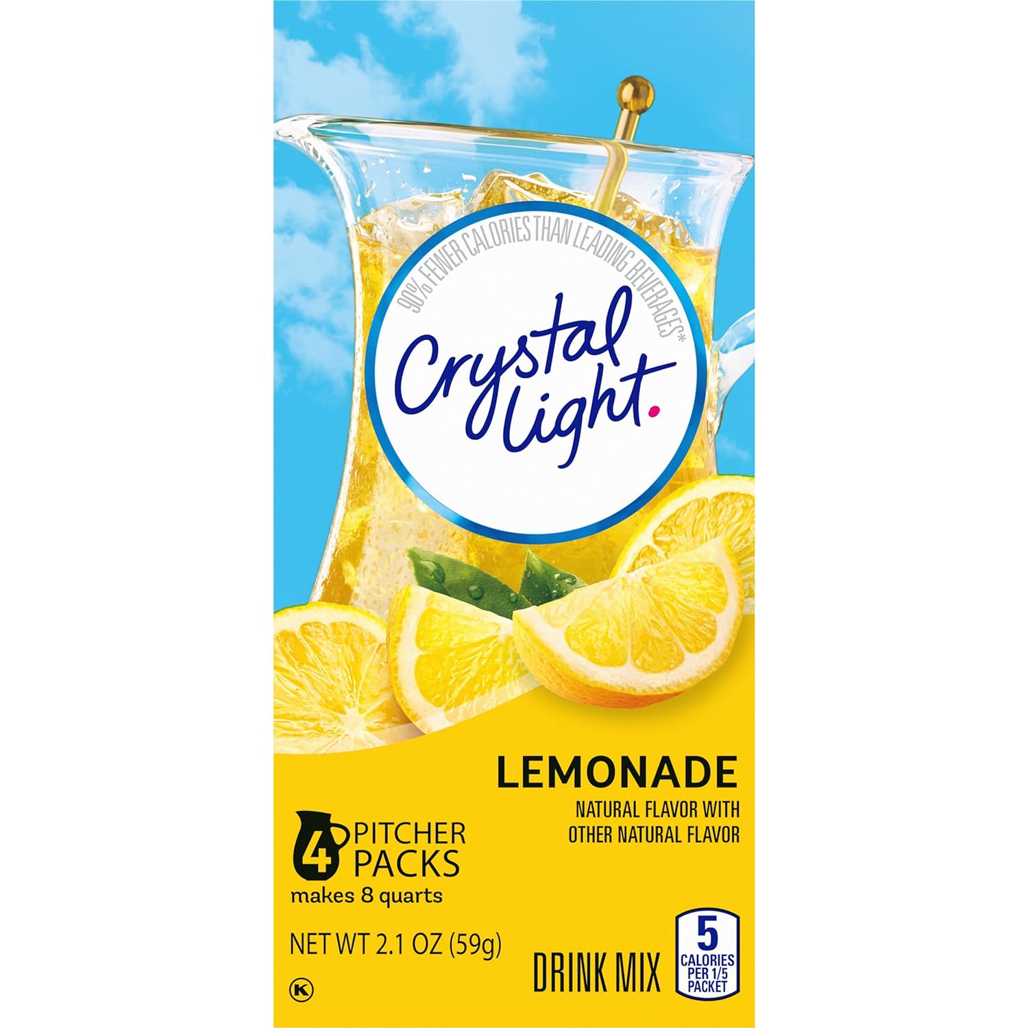 Crystal Light Naturally Flavored Lemonade Powdered Drink Mix Is A Deliciously Fruity Drink You Can Enjoy Anywhere. With Zero Grams Of Sugar And 5 Calories Per Serving, Crystal Light Is A Sweet Alternative To Juice And Soda And Has 90 Percent Fewer Calories Than Leading Beverages (This Product 5 Calories, Leading Beverages 70 Calories), So You Don'T Have To Choose Between Taste And Calories. The Pitcher Packets In This 4 Count Canister Of Powdered Lemonade Mix Come Perfectly Portioned, So You Can Mix Up A Pitcher Of Crystal Light Lemonade Easily. Simply Empty One Pack Into 2 Quarts Of Water, Stir, And Enjoy All The Flavor And Only 5 Calories Per Serving... Just The Way You Like It