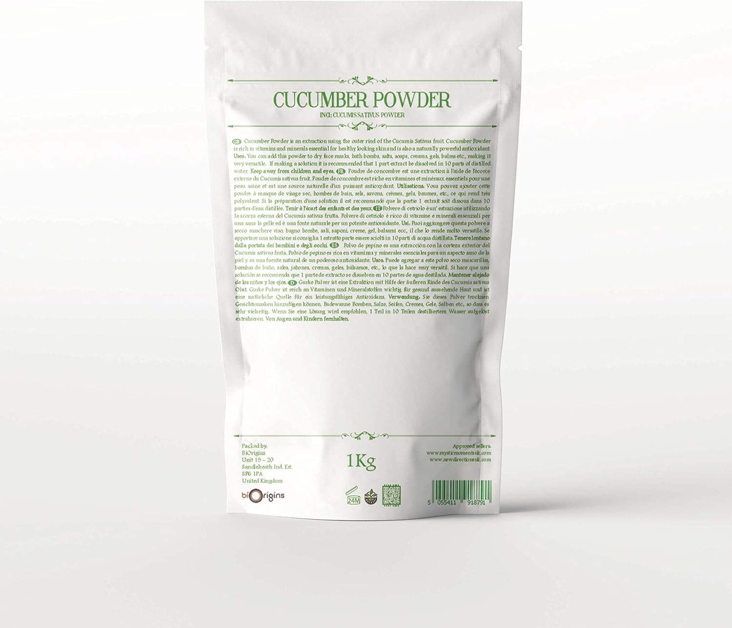 Cucumber Powder 1Kg Botanical Name: Cucumis Sativa Description: Calm & Cooling Cucumber extract is great to add into skin care products for skin tightening properties Do not consume. For external use only. Keep away from children and eyes