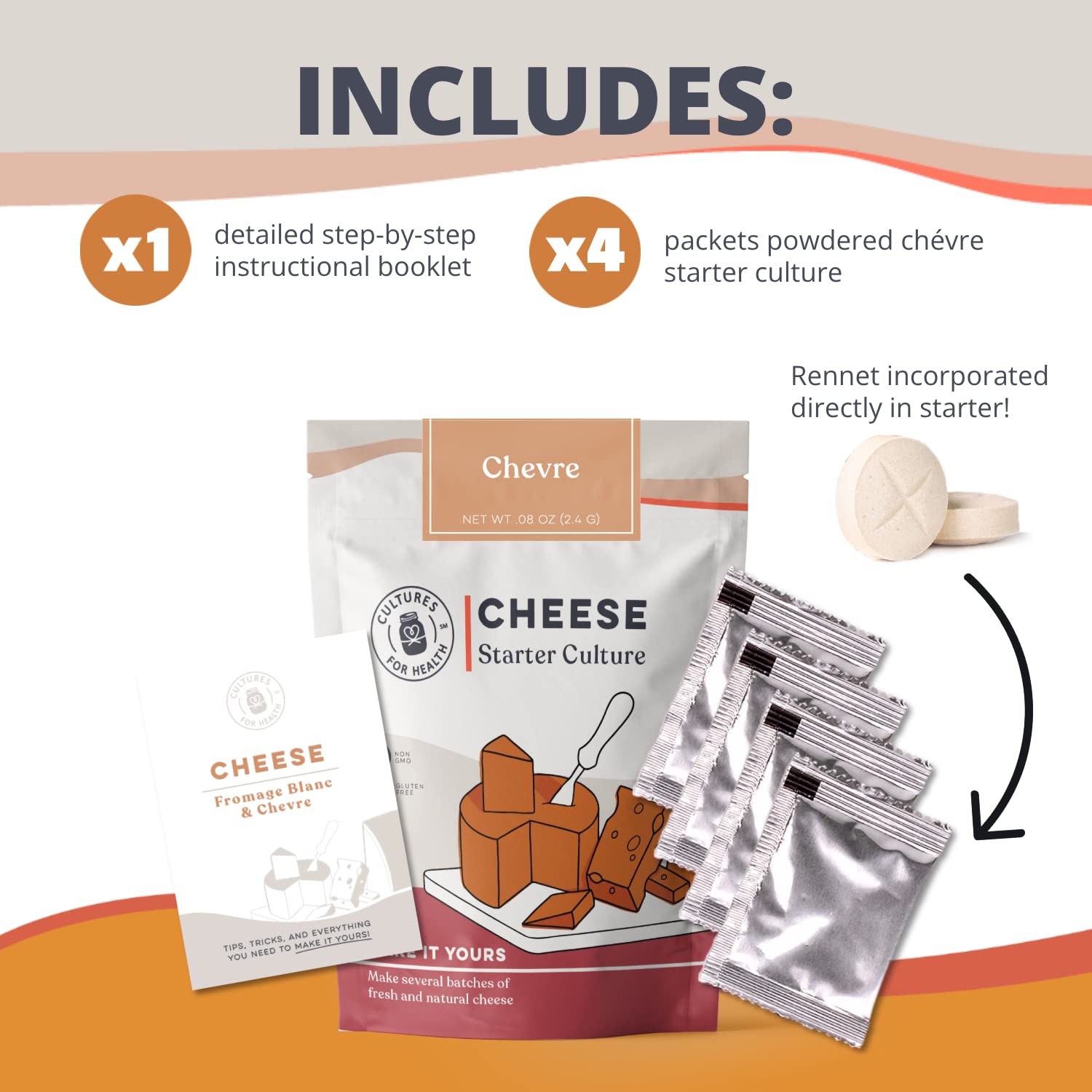 Cultures For Health Chevre Starter Culture | 4 Packets Mesophilic Powdered Active Cultures | Gluten Free Non-Gmo Soft Goat Cheese | Beginner Friendly Artisan Cheesemaking | Diy Fresh Spreadable Cheese
