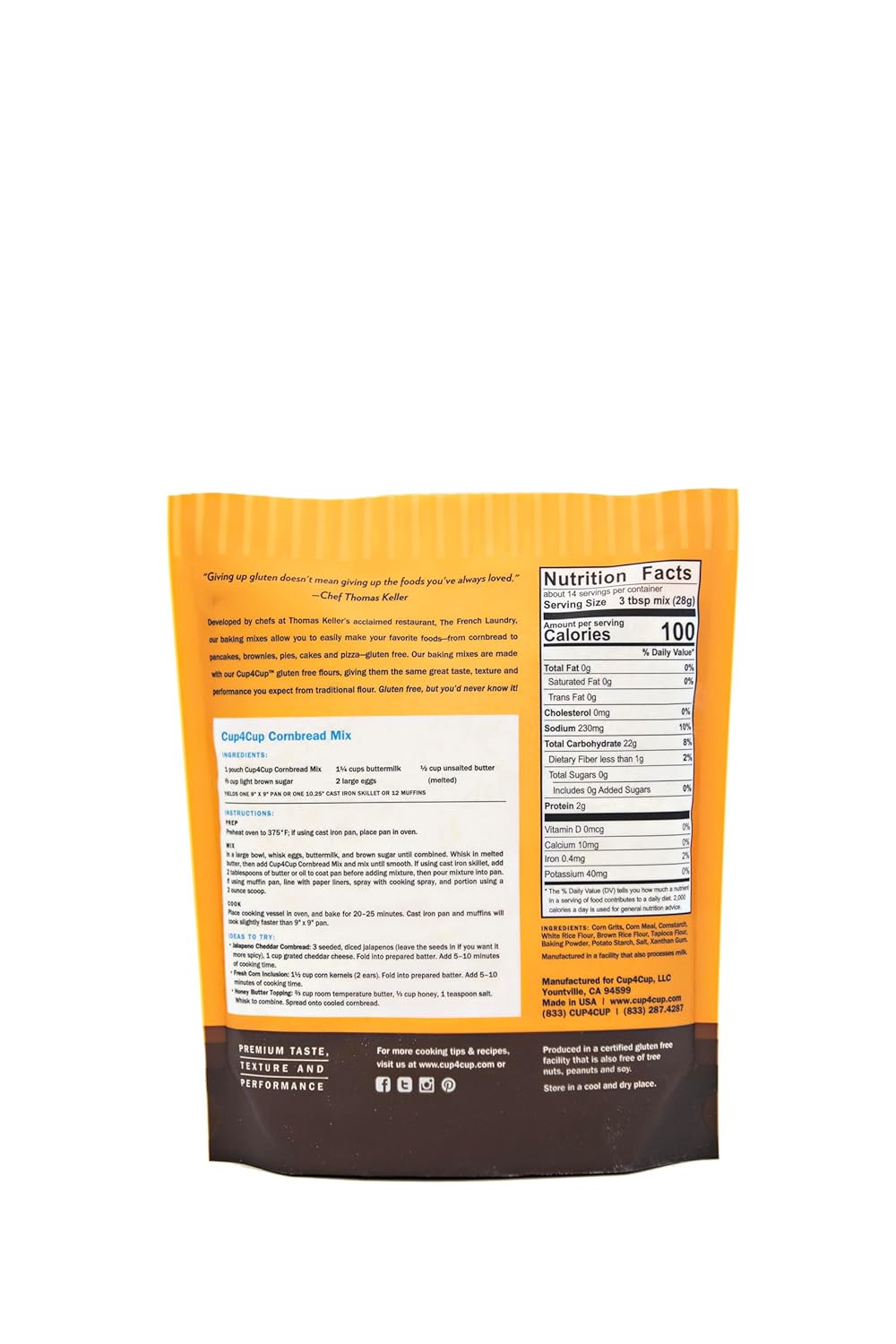 Contains one 0.88-pound bag of Cup4Cup Cornbread Mix. One bag makes one 9 x 9-inch pan, one 10.25-inch cast iron skillet or 12 muffins