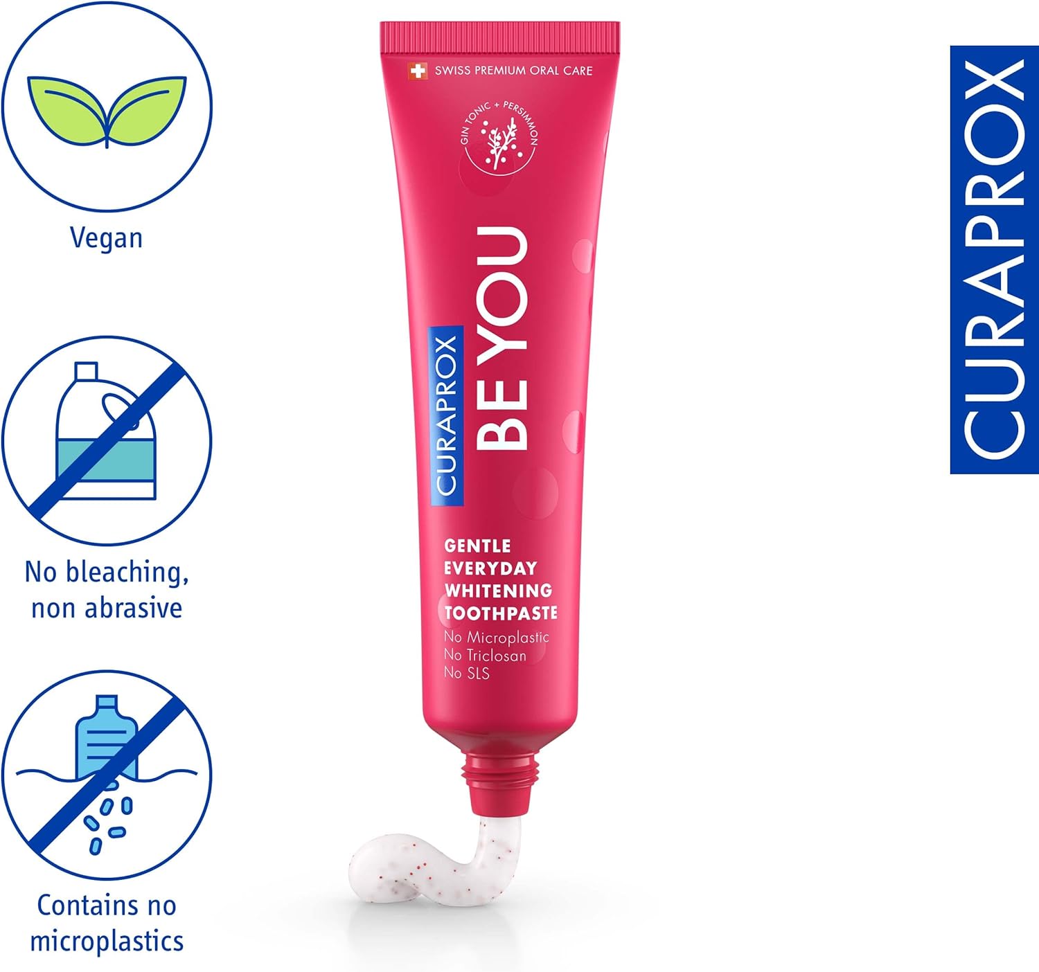 Curaprox Be You Gin Tonic + Persimmon Toothpaste Red 60Ml - Gentle Everyday Whitening Toothpaste - Sls Free, Microplastic Free, Triclosan Free, Fluoride Toothpaste