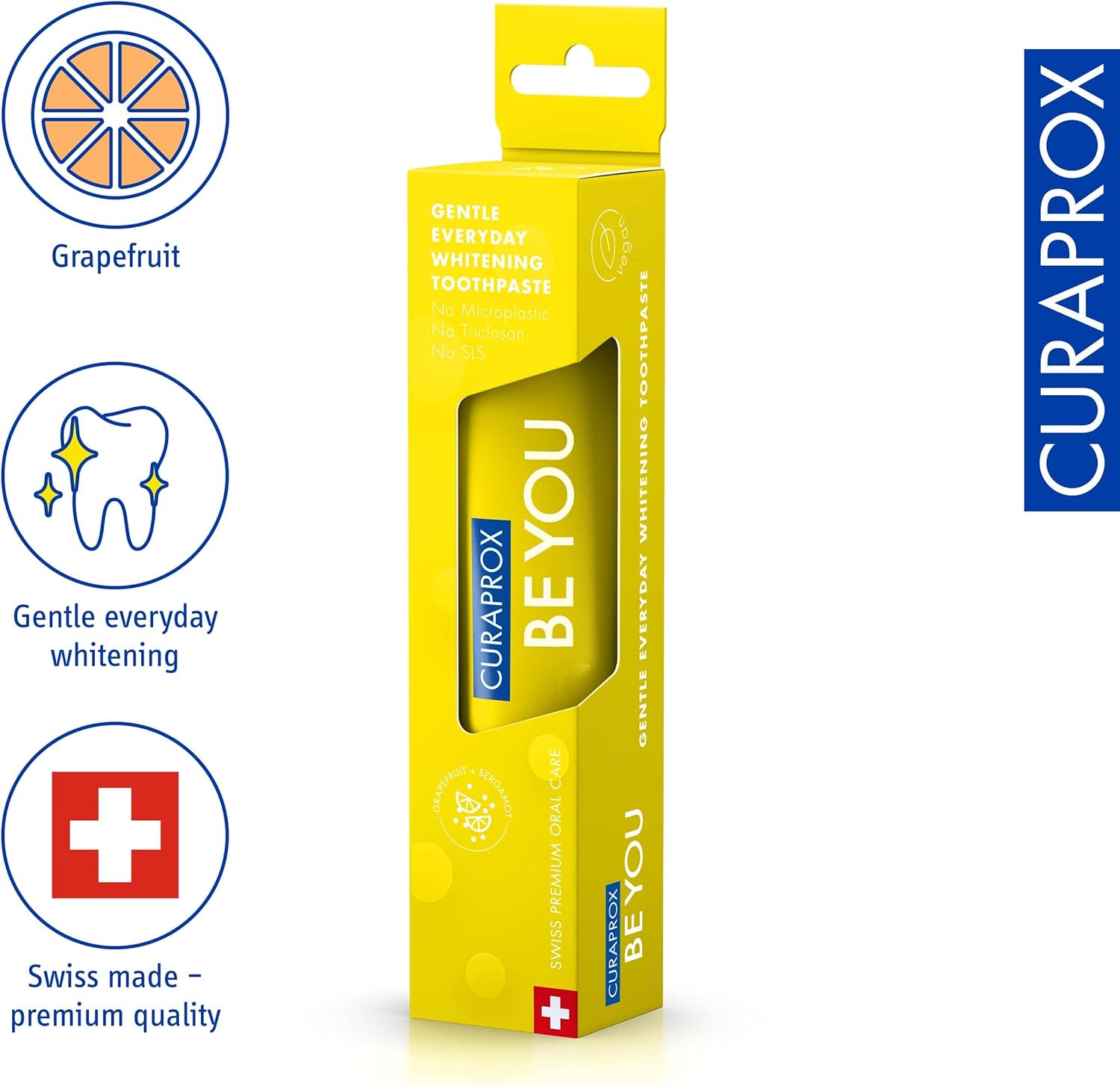 Curaprox Be You Grapefruit + Bergamot Toothpaste Yellow 60ml - Gentle Everyday Whitening Toothpaste - SLS Free, Microplastic Free, Triclosan Free, Fluoride Toothpaste