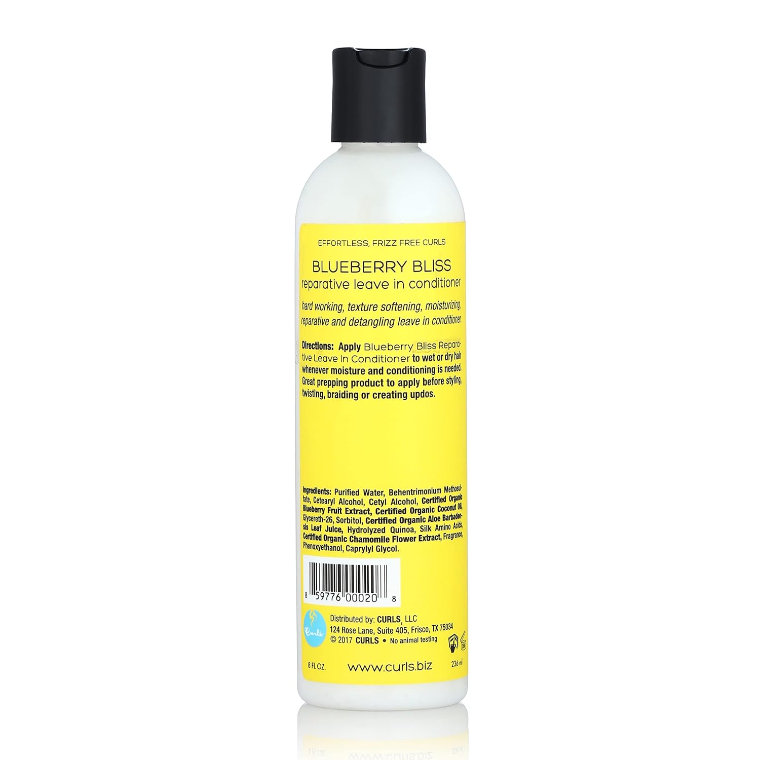 Softening & Nourishing Blueberry Bliss Reparative Leave-in Conditioner Repair, restore, and condition your overworked curls with Blueberry Bliss Reparative Leave-in Conditioner, a top pick for naturally curly, wavy, and coily hair. This hair conditioner features an enriching moisturizing formula infused with blueberry extract, coconut oil, aloe leaf juice, and chamomile extract. Use after the Blueberry Bliss Reparative Hair Mask (sold separately). Make quick work of detangling while helping to repair and restore your curls with this leave-in conditioner. Our curly hair conditioner is perfect for wavy, coily. and curly hair. And the best part It's free from sulfates, silicones, parabens, or artificial colors. Discover the magic of blueberries with our Blueberry Bliss Collection. Rich in antioxidants and essential vitamins, blueberries are known to shield your curls from environmental damage, preserving their vibrancy. Our formulas help define curls, strengthen hair, and lock in moisture, leaving your curls soft, supple, and hydrated,Uber Softening Leave In Conditioner for Curly Hair: Repair, restore, and condition your overworked curls with the Blueberry Bliss leave in conditioner. Helps repair damaged hair and prevent breakage,Nourishing Ingredients: Formulated with blueberry extract, coconut oil, aloe leaf juice, anthemis nobilis flower, and chamomile extract, this conditioner for women and men helps moisturize, soften, and detangle dry, tangled hair,Daily Hair Care Essential: The curl conditioner is extremely nourishing and hydrating. Contains no silicones, parabens, sulfates, or artificial colors. The perfect detangler for wavy, curly, coily, dry, and tangled hair,How to Use: Apply this curly hair leave in conditioner on both wet and dry hair for detangling and moisturization. It is also a great hair prepping product to use before styling, twisting, braiding, or creating updos,Our Secret Sauce: Unleash the magic of blueberries, rich in antioxidants and packed with vitamins. Our Blueberry Bliss Collection formulas have been meticulously crafted with conditioning benefits and natural extracts to preserve curl vibrancy