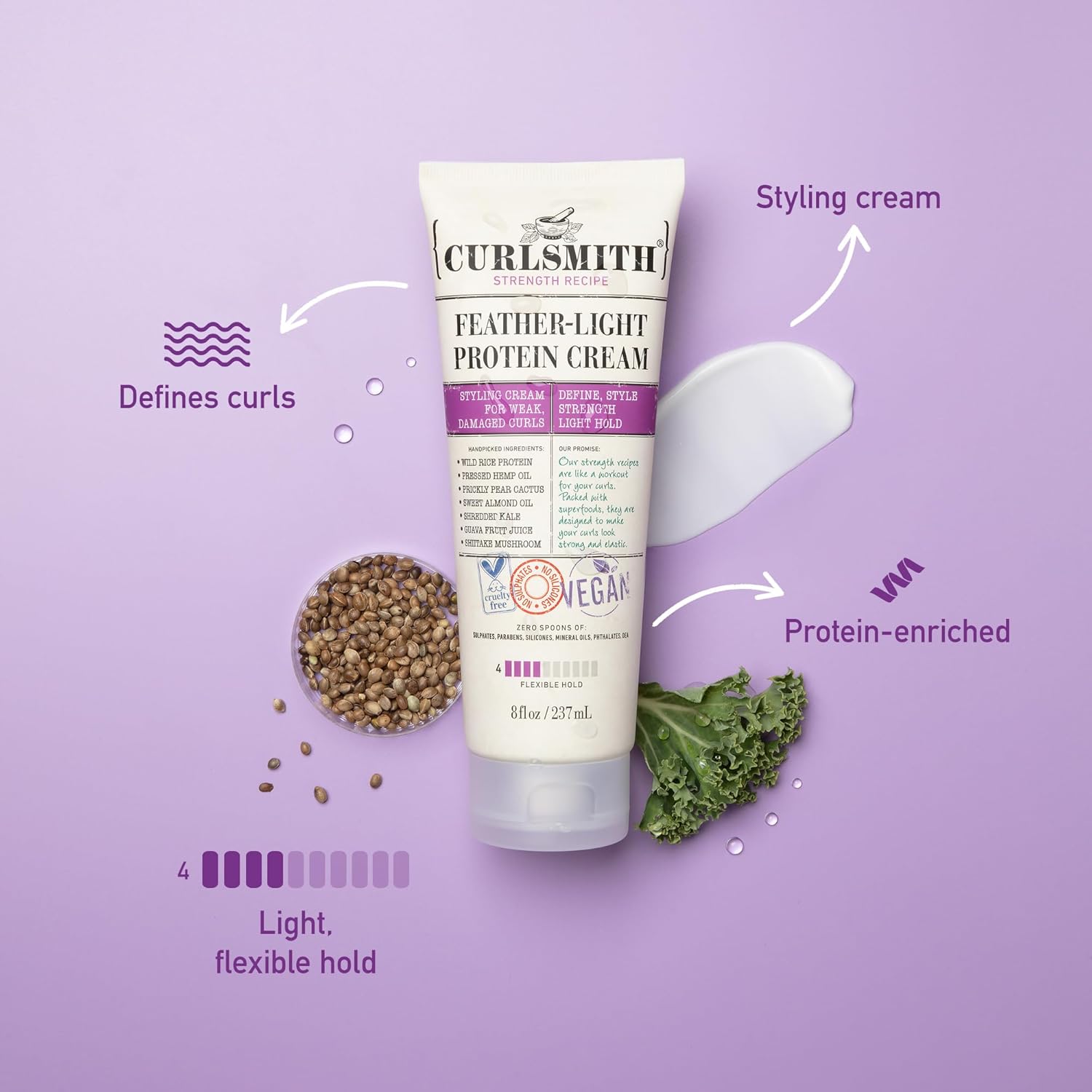 Curlsmith - Feather-Light Protein Cream, Hair Styling Cream For Weak, Damaged Curls, Medium Hold (237Ml)