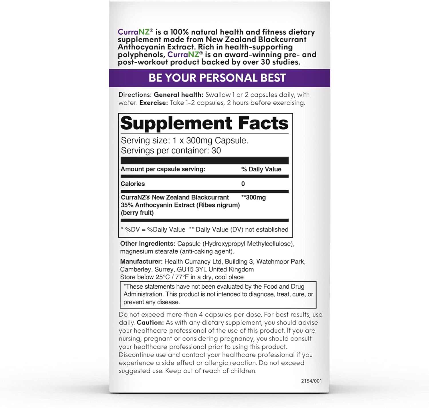 Curranz New Zealand Blackcurrant Extract Sports Nutrition Capsules Muscle Recovery Endurance Performance Pre Post Workout (30 Capsules)