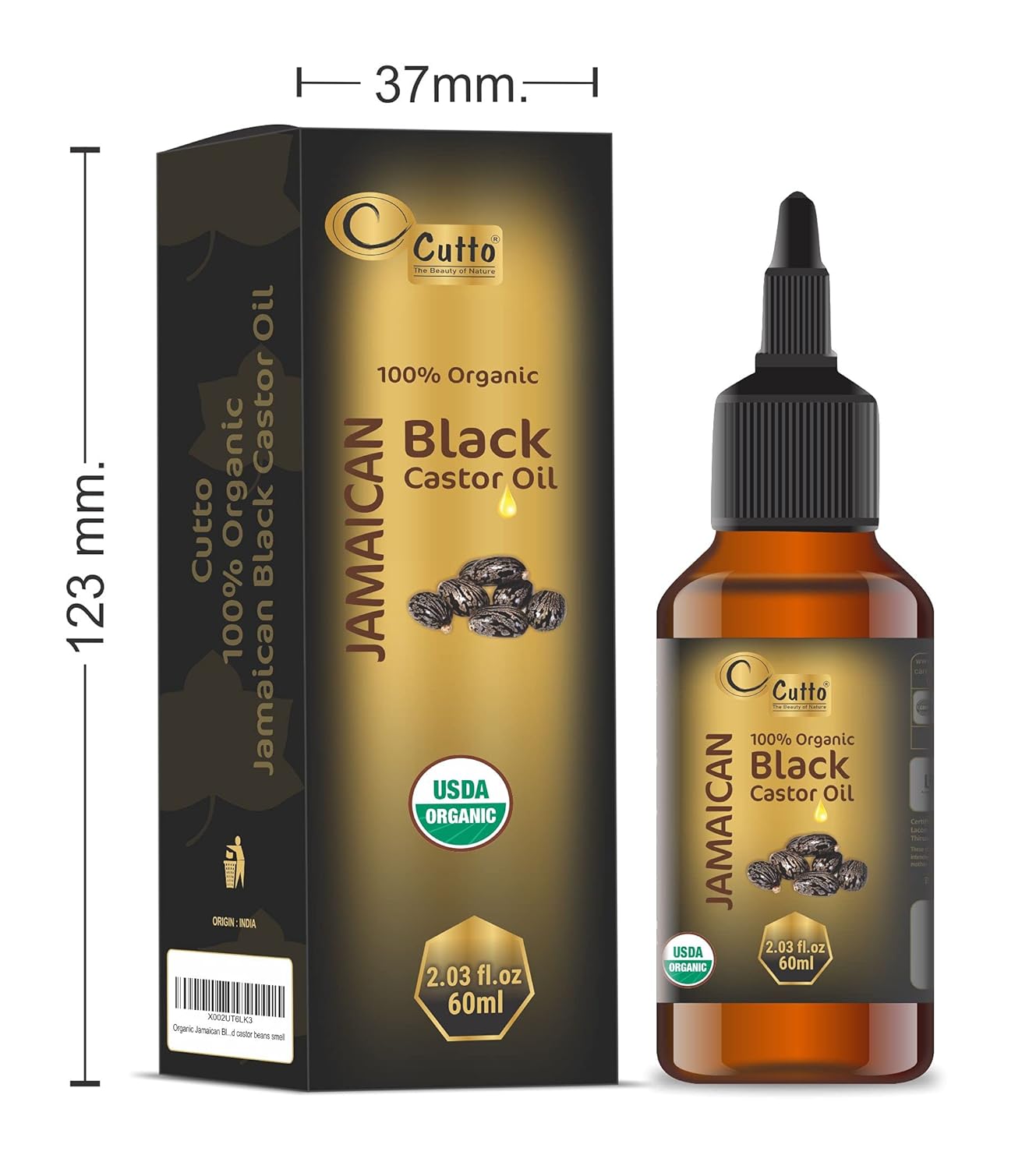 CUTTO -THE BEAUTY OF NATURE Organic Jamaican Black Castor Oil (2.03 fl oz/ 60 ml) USDA Organic,Traditional Handmade with