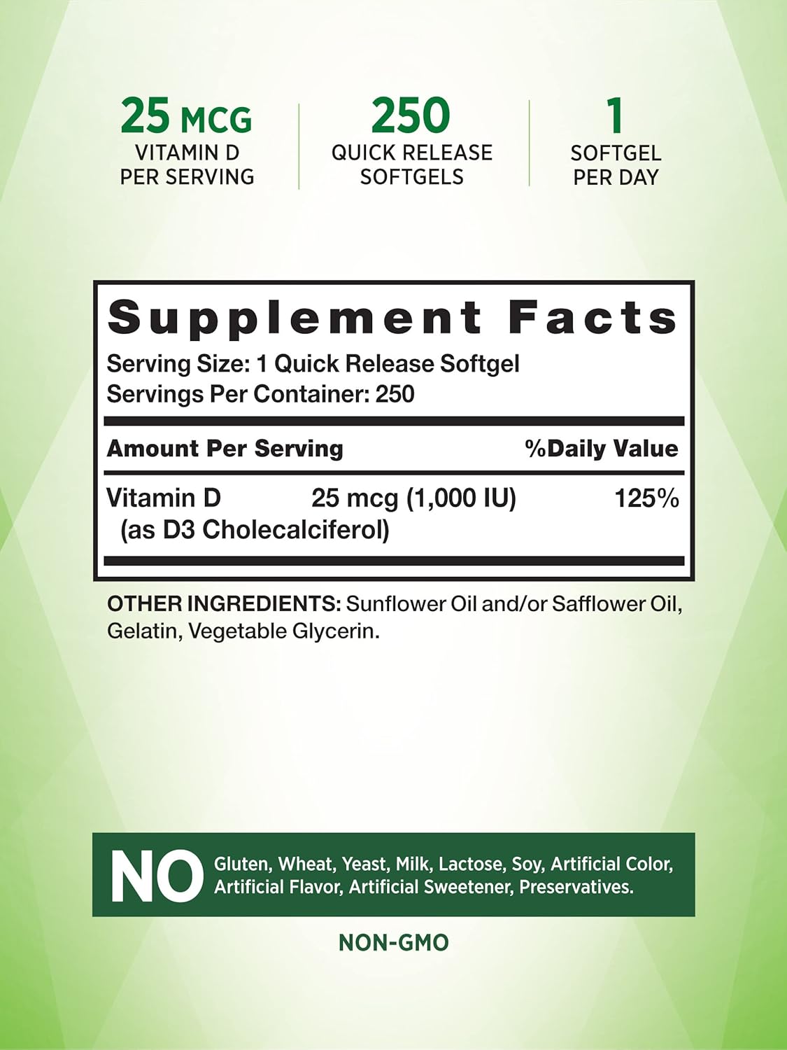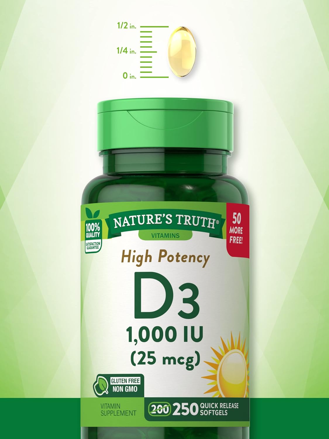 D3 1000 Iu | 250 Softgels | Essential Vitamin D | Non-Gmo & Gluten Free High Potency Supplement | By Nature'S Truth