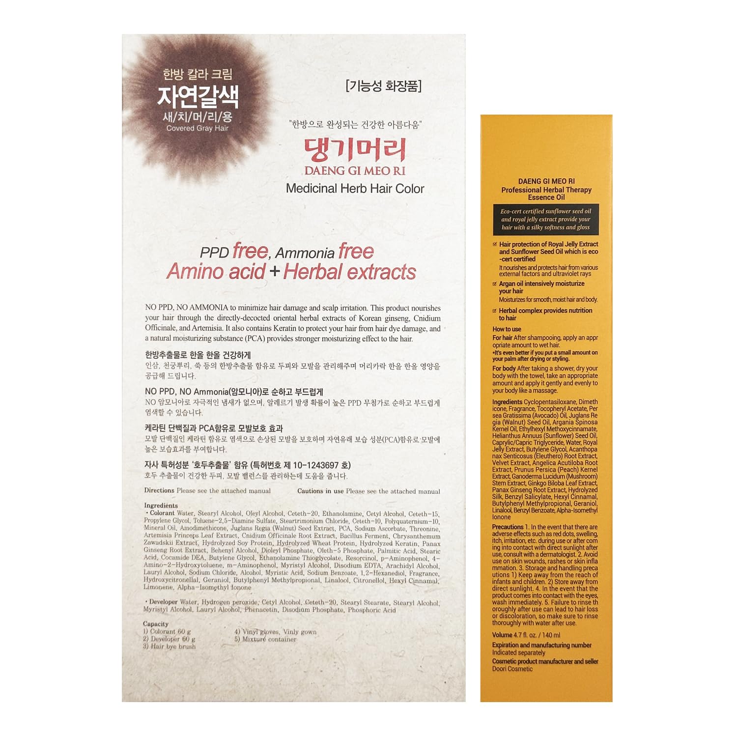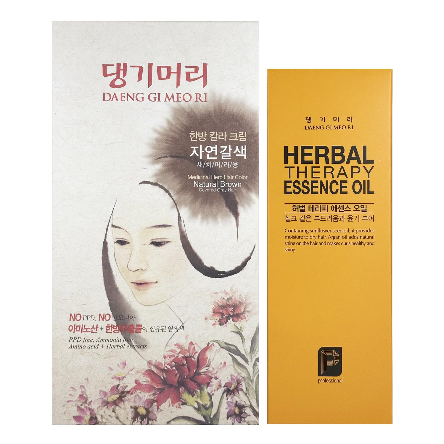 Daeng Gi Meo Ri β Korean Herbal Hair Dye Color Cream [Natural Brown] - Ppd-Free Gray Hair Protection, High-Keratin Formula, 5 Oz + Bonus Professional Herbal Therapy Essence Oil, 140Ml