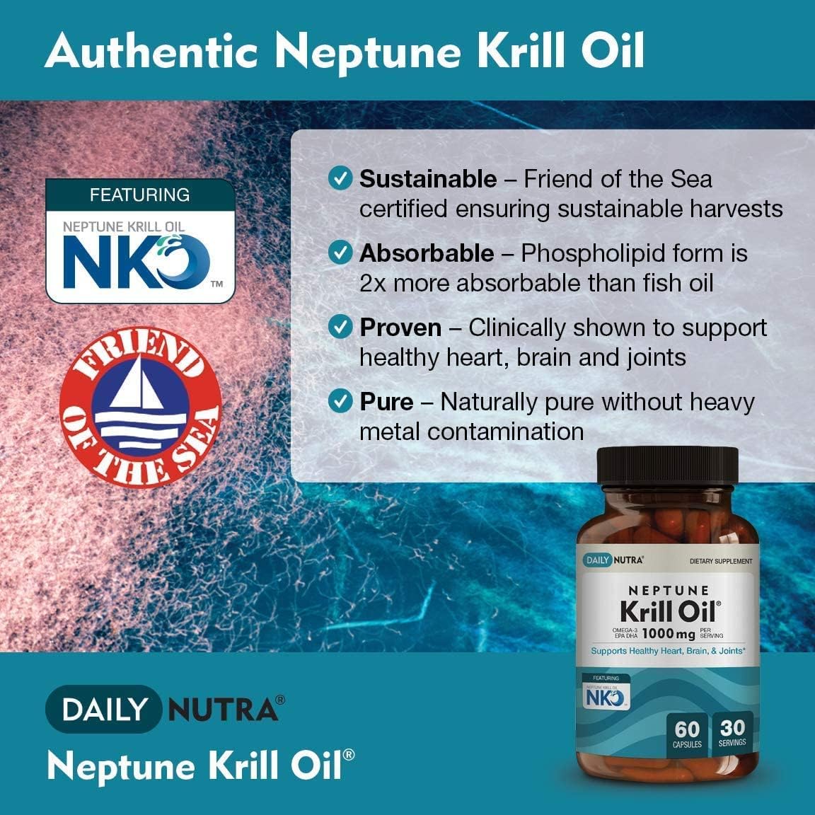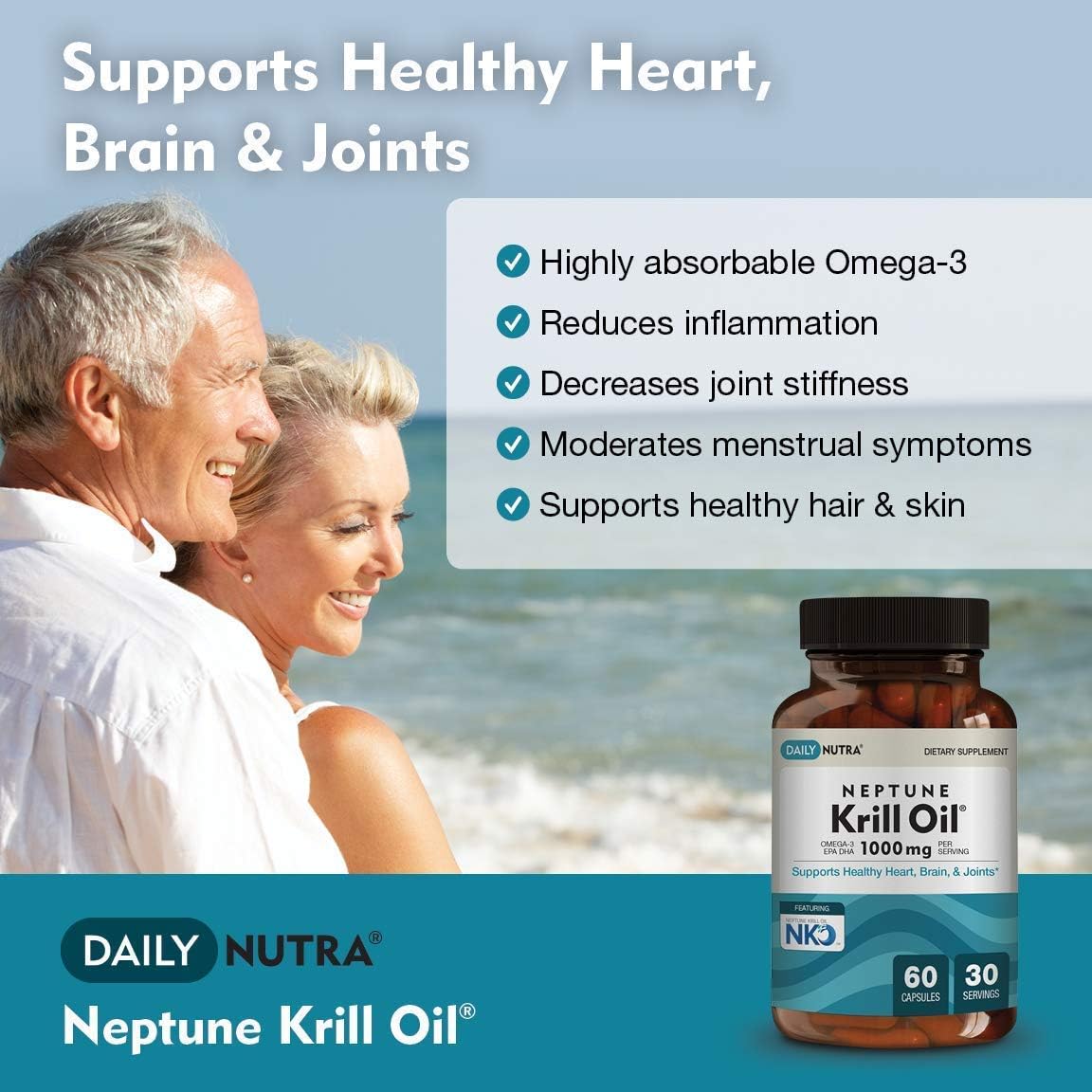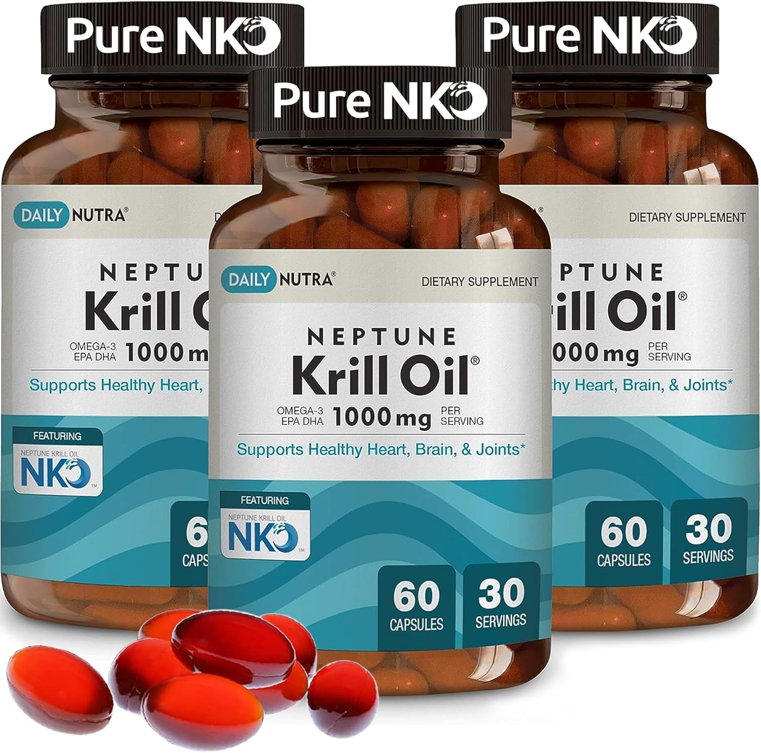 DESCRIPTION : DailyNutra Neptune Krill Oil 1000mg - Antarctic Krill Oil Omega-3 Phospholipids, EPA, DHA & Astaxanthin Softgel- Promotes Healthy Heart, Brain, & Joints - No Fishy Aftertaste (3 - Packs)