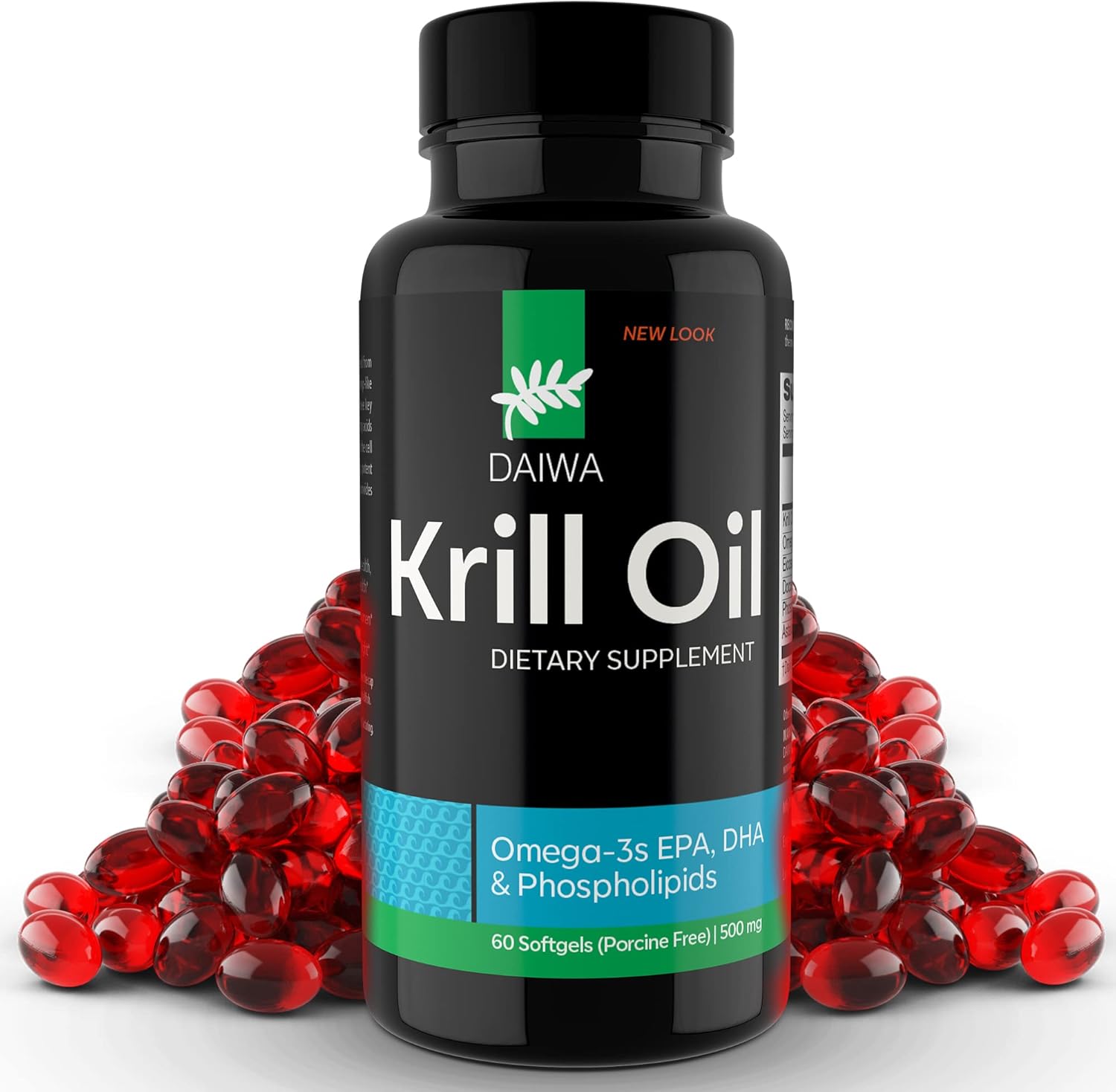 Daiwa Krill Oil 1000Mg Softgels - Epa Dha Krill Oil Omega 3 6 9 With Astaxanthin For Joint, Brain And Heart Health - Antarctic Krill Oil Supplement - 60/Ct