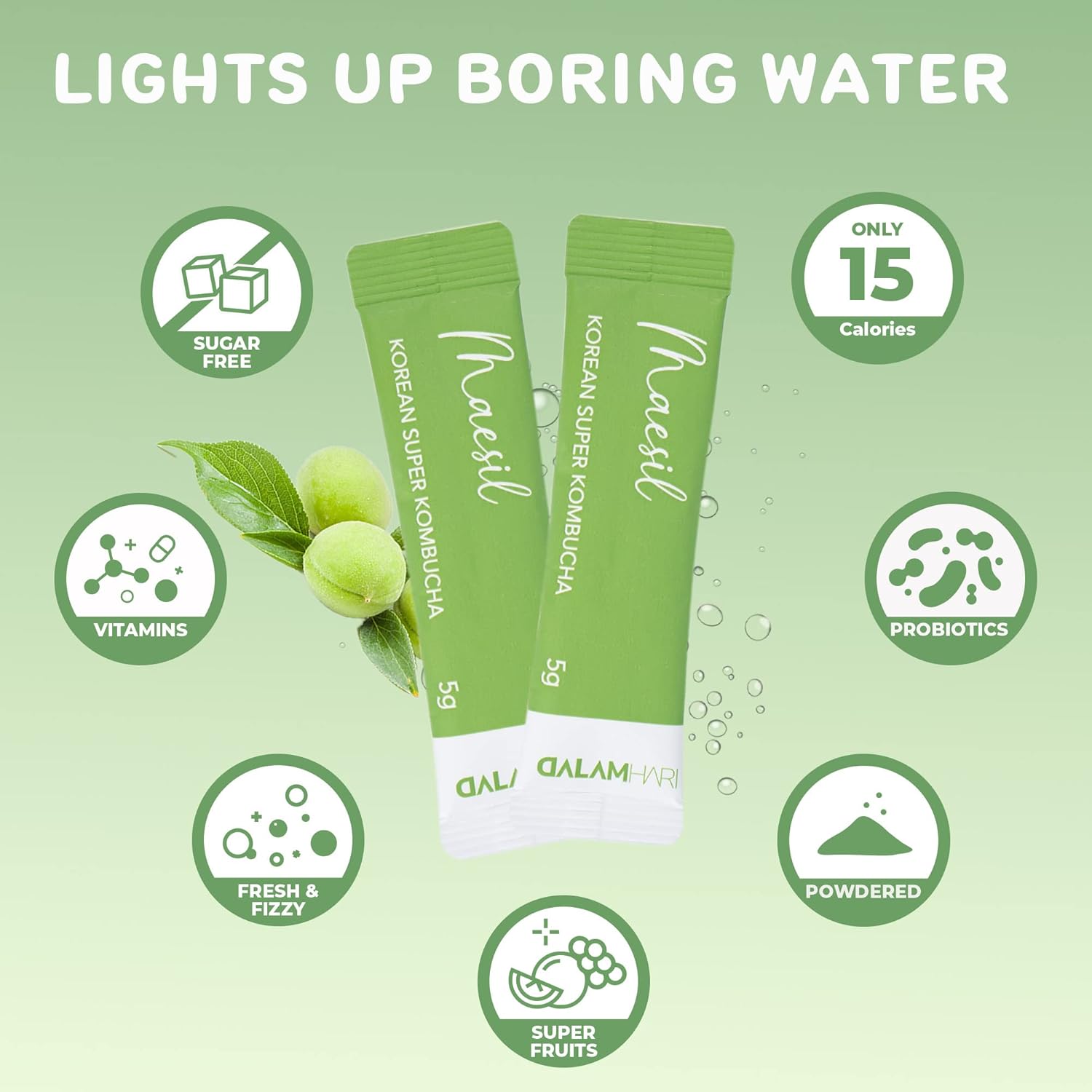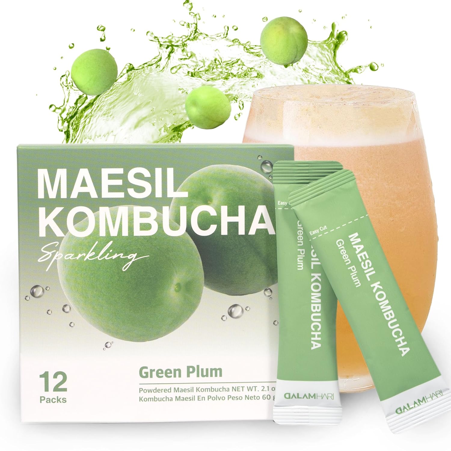 Dalamhari Green Plum Super Kombucha Powder Tea, 12 Counts | 15Kcal Scoby Fizz Sticks Urban Remedy Hydrant Powder Packets Switch Drink Health Ade Synergy Kombucha Kambutcha