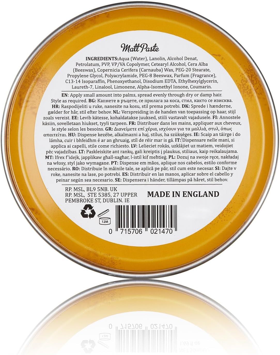 Dapper Dan Matt Paste, High Hold Low Shine Hair Paste For Men, Adds Texture With Flexible Hold For All Styles, Vintage Cologne Fragrance, 1 X 100Ml
