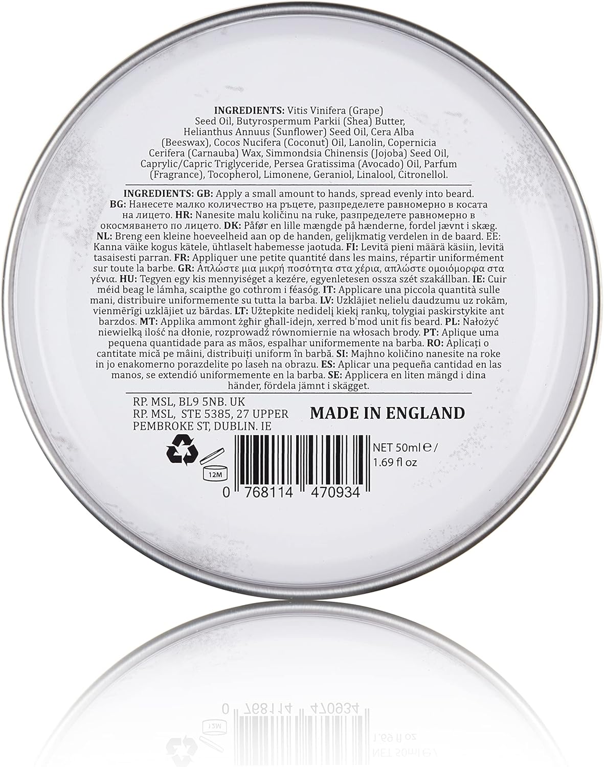 Dapper Dan Nourishing Beard Balm, Blend Of Essential Oils And Waxes To Shape, Style And Nourish Moustaches And Beard, Vanilla And Raspberry Scent, 1 X 50Ml