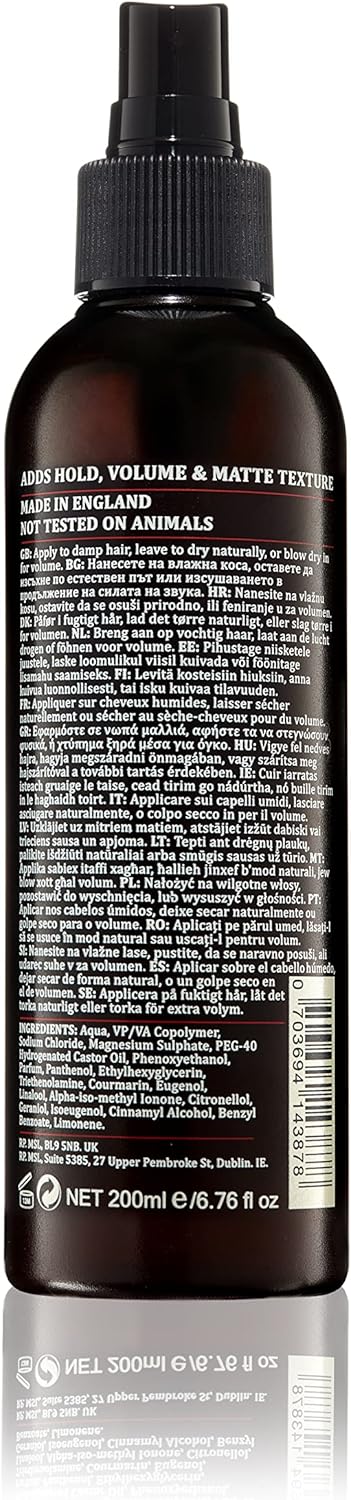 Dapper Dan Sea Salt Spray, Texturizing Sea Salt Hair Spray For Men, Matte And Textured Finish, Adds Thickness And Volume, Natural Finish, Classic Sandalwood Scent, 1 X 200Ml