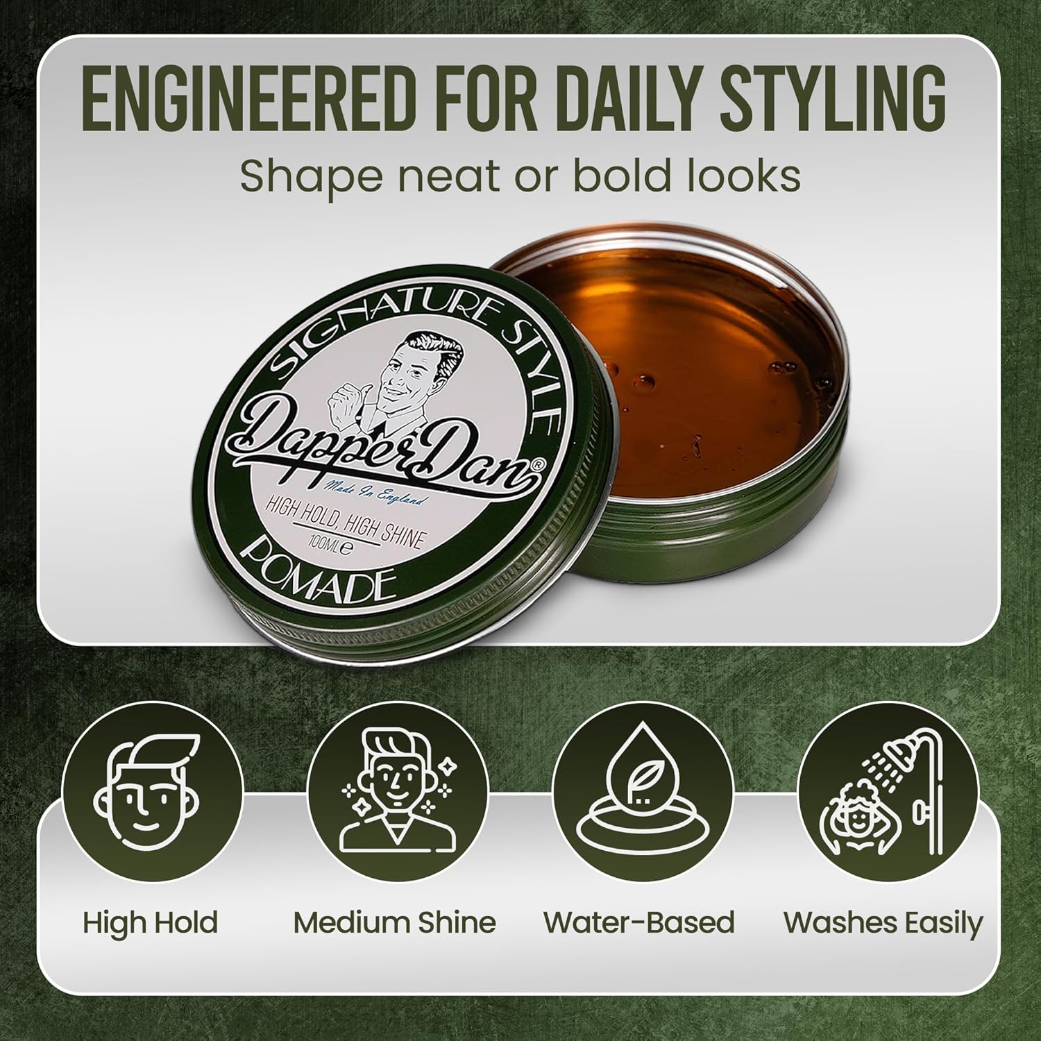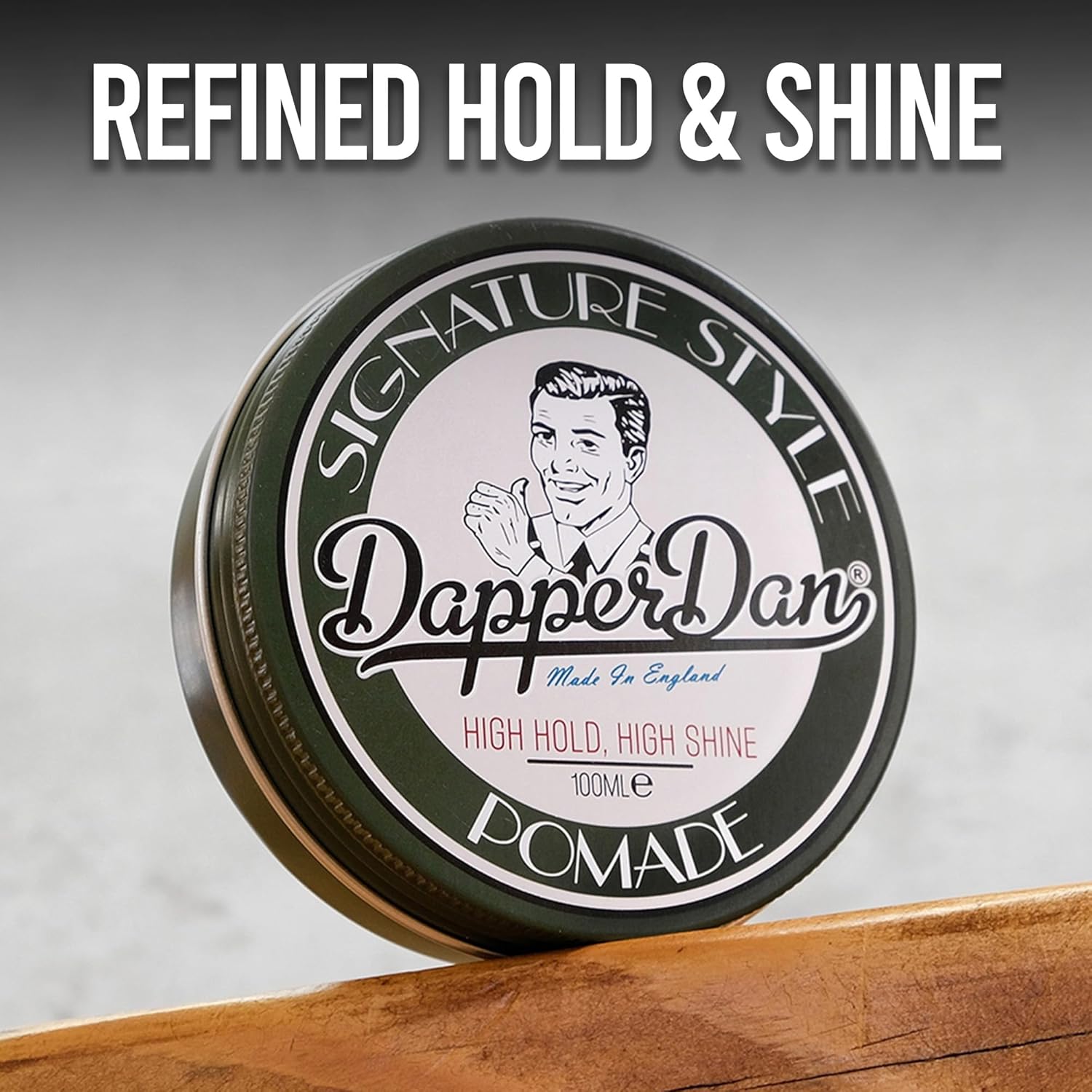 Dapper Dan Signature Style Pomade, High Shine High Hold Hair Pomade For Men, Achieve Classic Styles, Water Based Pomade For All Hair Types, Bergamot And Leather Fragrance, 100Ml