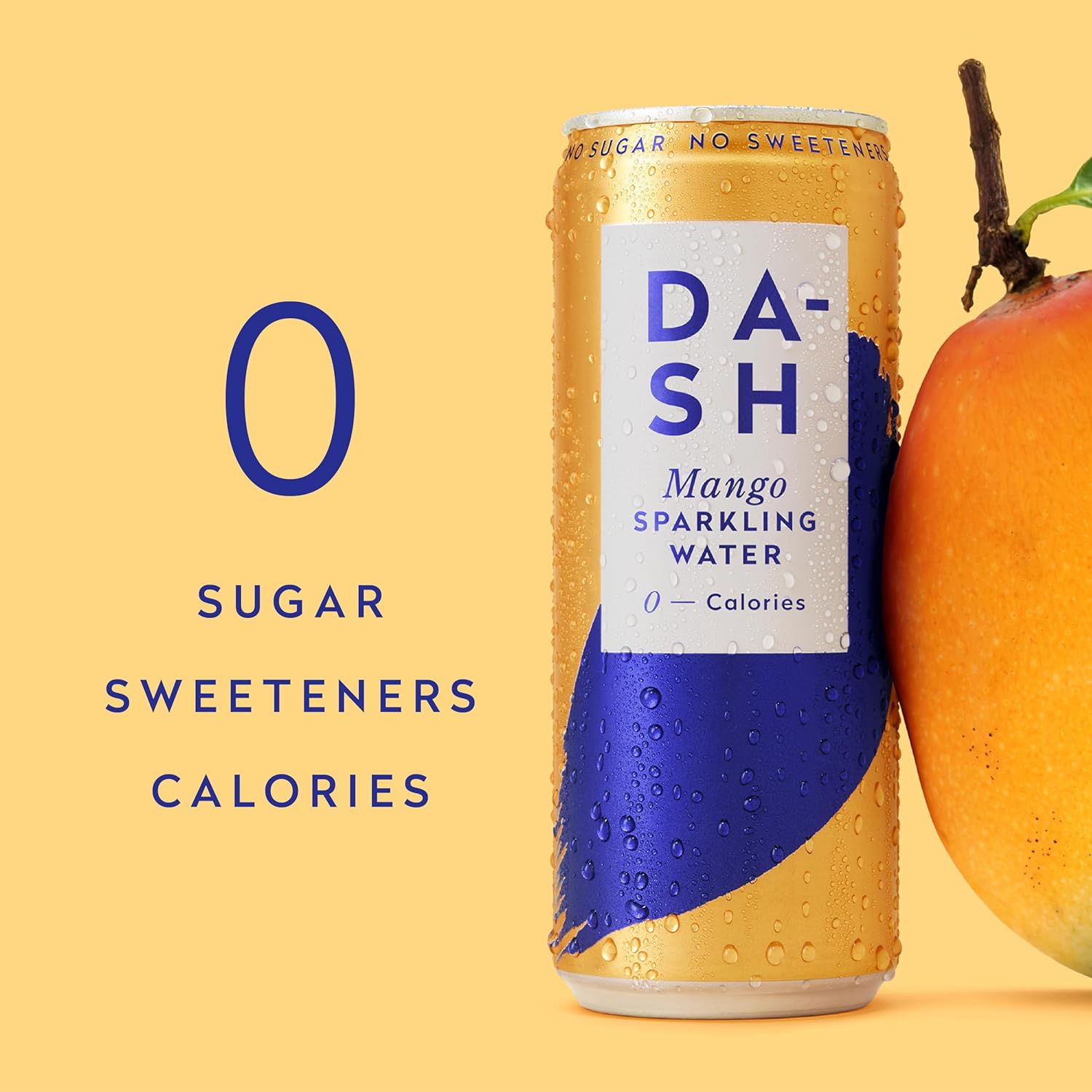 Dash Water Mango - 12 X Mango Flavoured Sparkling Spring Water - No Sugar, No Sweetener, No Calories - Infused With Wonky Fruit (12 X 330Ml Cans)