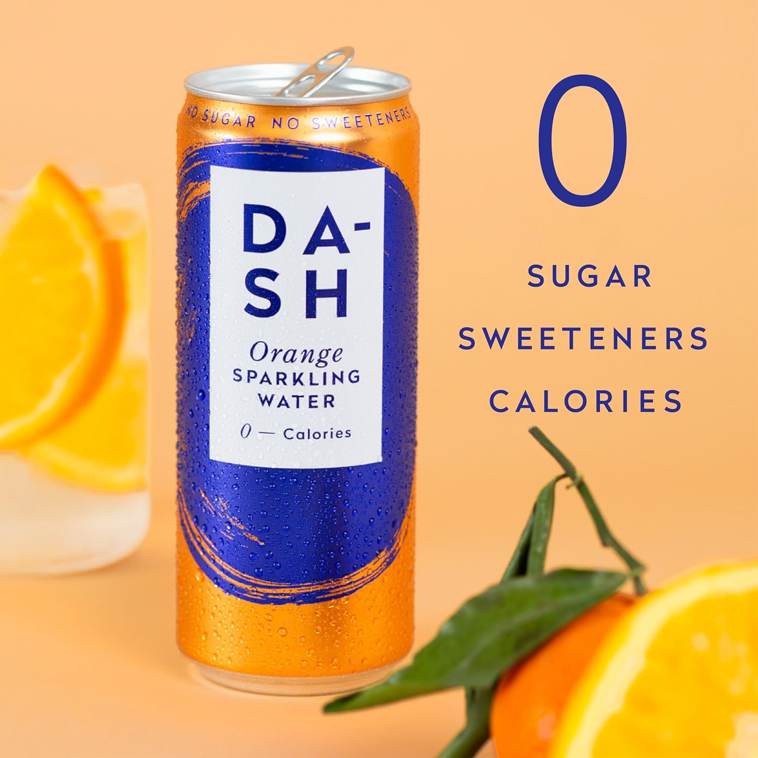 Dash Water Orange - 12 X Orange Flavoured Sparkling Spring Water - No Sugar, No Sweetener, No Calories - Infused With Wonky Fruit (12 X 330Ml Cans)