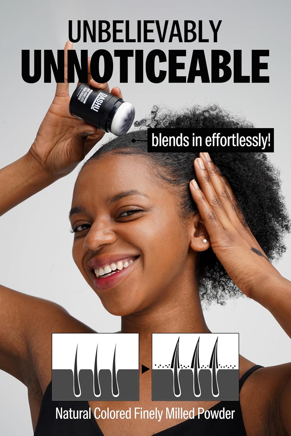 About this item MESS-FREE & CONVENIENT. Effortlessly achieve thicker, fuller hair with DASHU Hair Powder Cushion! The handy puff stick design ensures quick, mess-free use. Unlike other products, it adheres well and doesn't leave stains on your ears or shoulders. Plus, it won't get on your hands during application! HYPOALLERGENIC & SCALP-FRIENDLY. Formulated with scalp-loving ingredients like Hydrolyzed Collagen, Rosemary, Licorice, Heartleaf, Ginseng, and Black Beans, this hair fillers for thinning hair features a Skin Irritation Index of 0.00%. It's gentle to use on the crown parts, and hairlines, providing natural coverage while soothing your scalp. NOURISHING INGREDIENTS. Enriched with Ginseng, Rosemary, Black Bean, Perilla Leaf, and Peony, this fluffy hair powder color touch up offers a non-invasive, temporary solution for those experiencing hair thinning. Rich in vitamins and minerals, it nourishes your hair, helping to reduce hair fall. NATURAL, BUILDABLE COVERAGE. The finely milled root touch up powder blends seamlessly with your skin tone for buildable, natural-looking coverage. It covers bald spots, enhances hair richness, and stays resistant to wind, sweat, sebum, and water. It washes off cleanly with soap or shampoo, leaving no residue. HOW TO USE To use the hair concealer cover, start by unscrewing the cap and removing the plastic cover. Once you've replaced the cap, tap the back of your hand until the powder dispenses. Finally, apply the hair filler powder by tapping it onto the desired area to stay fresh all day long. › See more product details,MESS-FREE & CONVENIENT. Effortlessly achieve thicker, fuller hair with DASHU Hair Powder Cushion! The handy puff stick design ensures quick, mess-free use. Unlike other products, it adheres well and doesn't leave stains on your ears or shoulders. Plus, it won't get on your hands during application!,HYPOALLERGENIC & SCALP-FRIENDLY. Formulated with scalp-loving ingredients like Hydrolyzed Collagen, Rosemary, Licorice, Heartleaf, Ginseng, and Black Beans, this hair fillers for thinning hair features a Skin Irritation Index of 0.00%. It's gentle to use on the crown parts, and hairlines, providing natural coverage while soothing your scalp,NOURISHING INGREDIENTS. Enriched with Ginseng, Rosemary, Black Bean, Perilla Leaf, and Peony, this fluffy hair powder color touch up offers a non-invasive, temporary solution for those experiencing hair thinning. Rich in vitamins and minerals, it nourishes your hair, helping to reduce hair fall,NATURAL, BUILDABLE COVERAGE. The finely milled root touch up powder blends seamlessly with your skin tone for buildable, natural-looking coverage. It covers bald spots, enhances hair richness, and stays resistant to wind, sweat, sebum, and water. It washes off cleanly with soap or shampoo, leaving no residue,HOW TO USE To use the hair concealer cover, start by unscrewing the cap and removing the plastic cover. Once you've replaced the cap, tap the back of your hand until the powder dispenses. Finally, apply the hair filler powder by tapping it onto the desired area to stay fresh all day long
