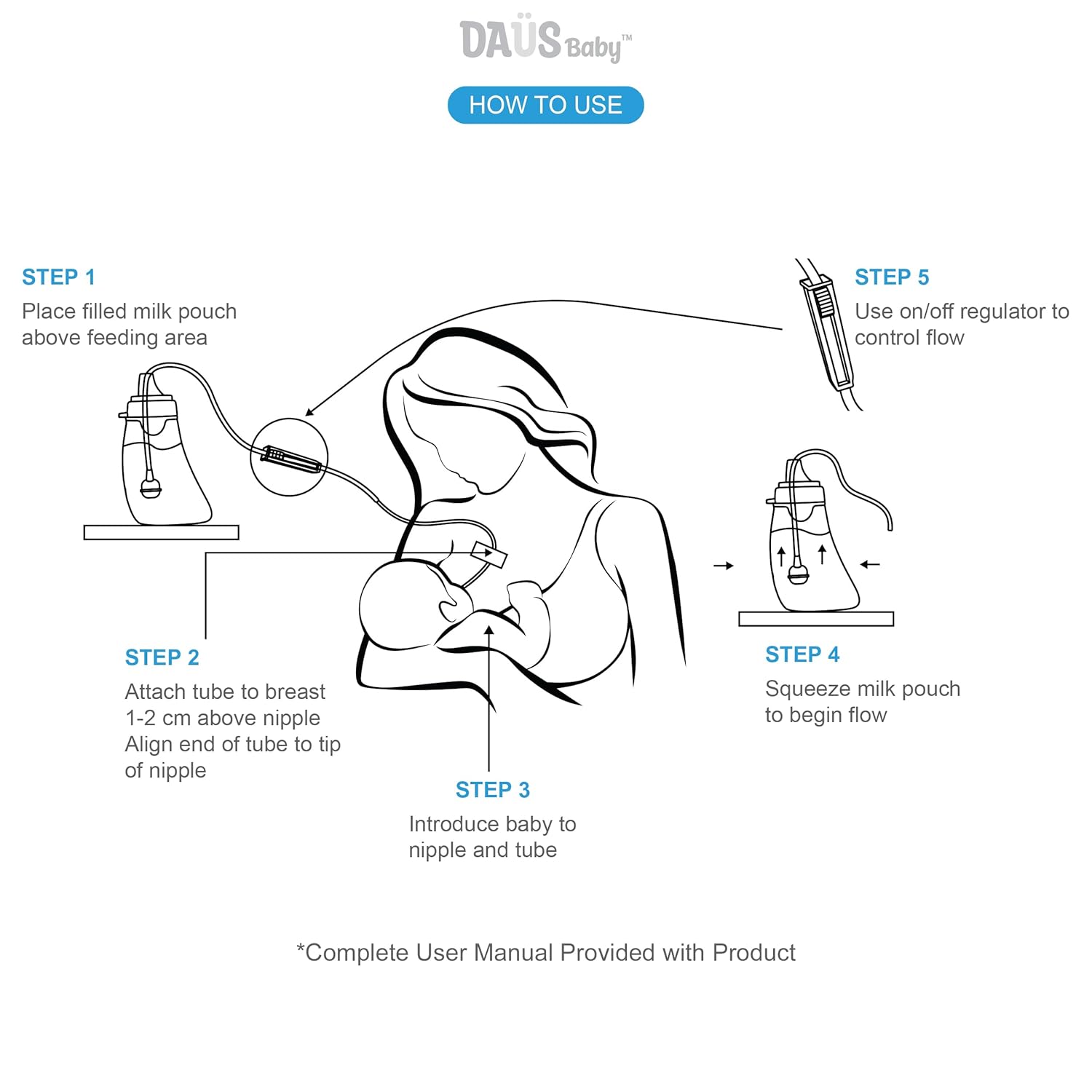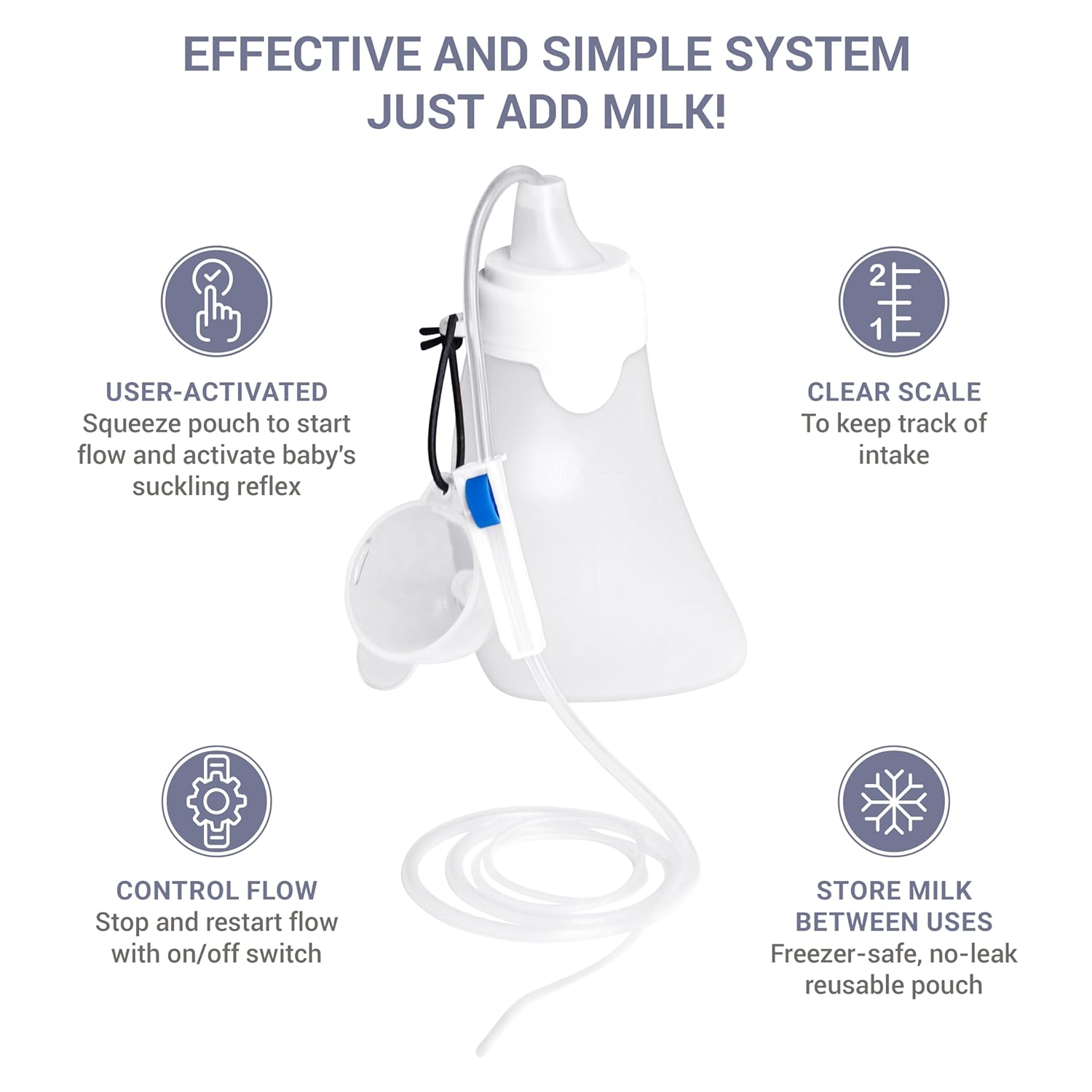 Daus™ User-Activated Supplemental Feeding System (Sns) With Flow Regulator And Reusable Milk Storage Bag, 4 Oz / 120 Ml Capacity, Patent Pending (Sns System 1Pk)