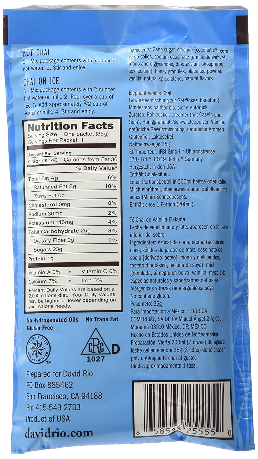 David Rio Chai Tea Single Serve Packets, Elephant Vanilla, 1.23 Ounce (Pack Of 48)