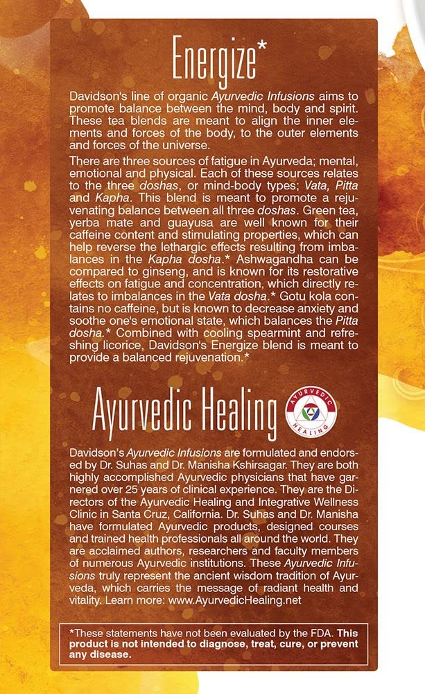 Davidson'S Organics, Ayurvedic Infusions, Energize, 25-Count Tea Bags, Pack Of 6