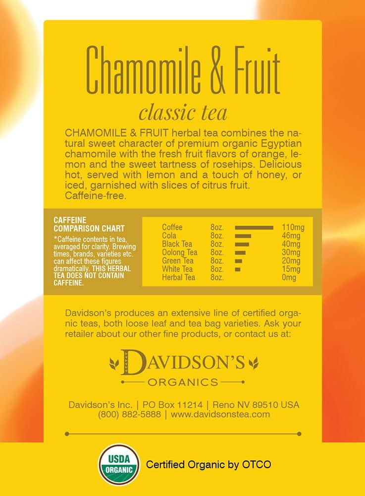 Chamomile & Fruit Combines Citrus Essence With A Floral Base Of Rosehips And Chamomile. Davidson'S Chamomile & Fruit Is A Fruity Blend With Light, Floral Undertones