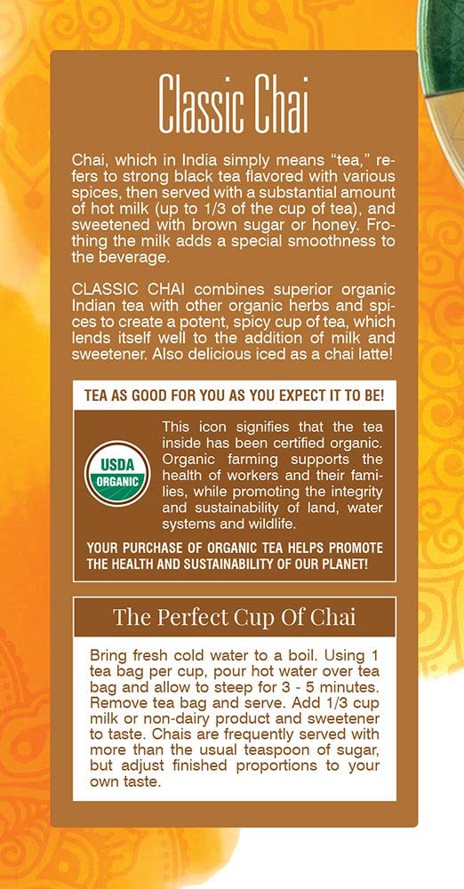 Davidson'S Organics, Classic Chai, 25-Count Tea Bags, Pack Of 6