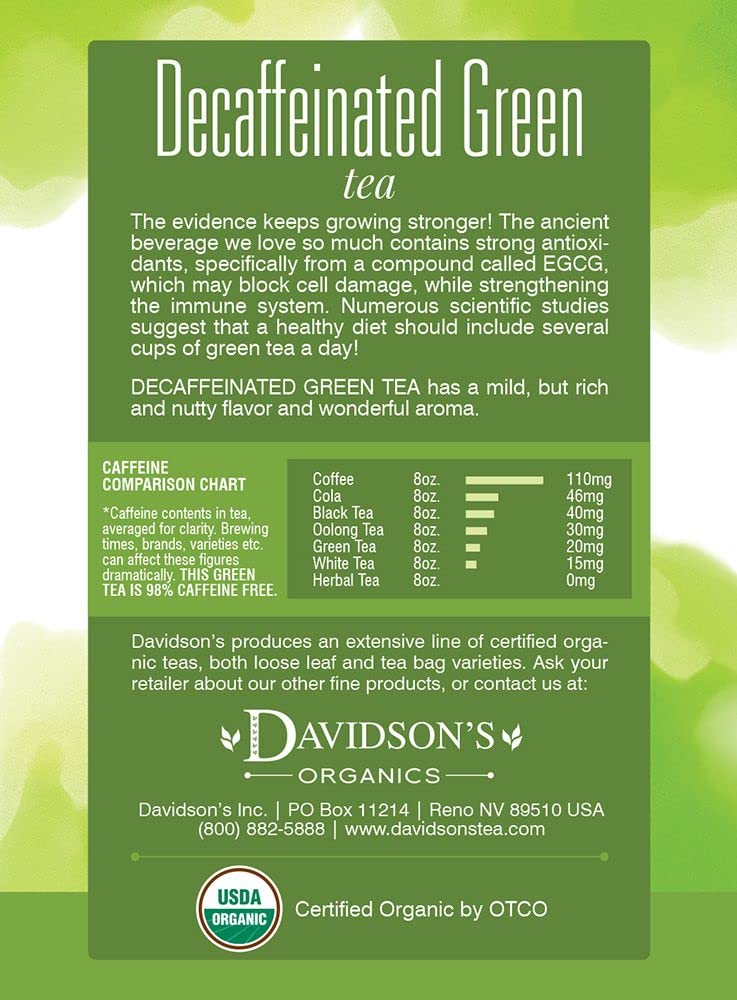 Decaffeinated Green Offers A Pure Decaffeinated Green Tea Base. Davidson'S Decaffeinated Green Boasts A Light, Nutty Flavor Profile, As Rich As Its Caffeinated Counterpart