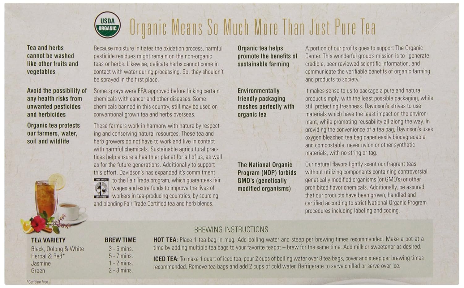 Trust Our Tea: Davidson'S Organics Was The First Purveyor Of Fine Organic Teas. Since 1976, We’Ve Worked Tirelessly To Develop Blends That Are True Reflections Of Their Names, While Being Committed To Sourcing Healthy Ingredients Grown By Generations Of Skilled Small Farmers. Enjoy Davidson'S Organics, The Organic Tea That Sets The Standards For The Highest Quality