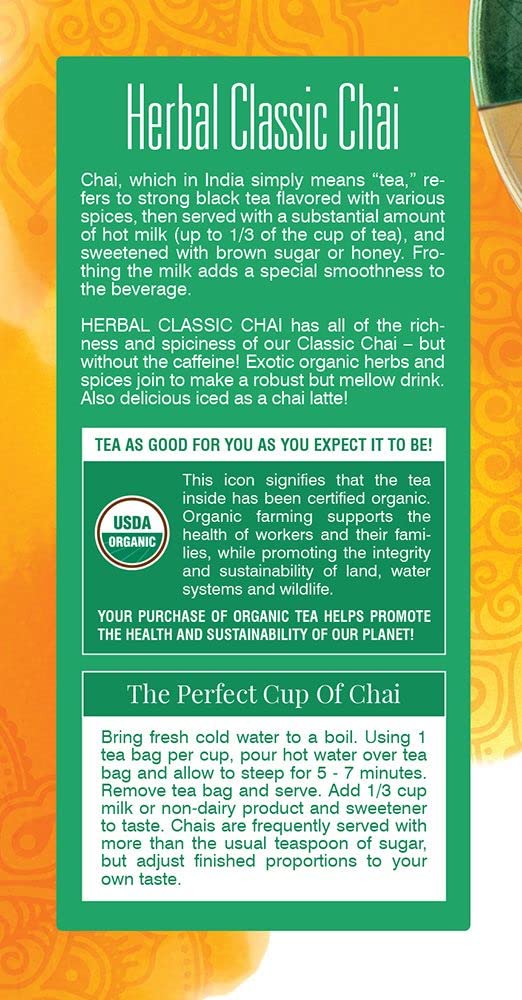 Herbal Classic Chai Combines Robust Spices With A Base Of Sweet, Earthy Rooibos. Davidson'S Herbal Classic Chai Is A Spicy Herbal Blend With A Touch Of Natural Sweetness, Provided By The Rooibos