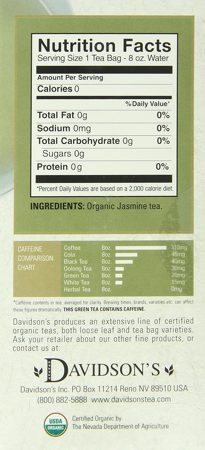 Davidson'S Organics, Jasmine Flower, 25-Count Tea Bags, Pack Of 6